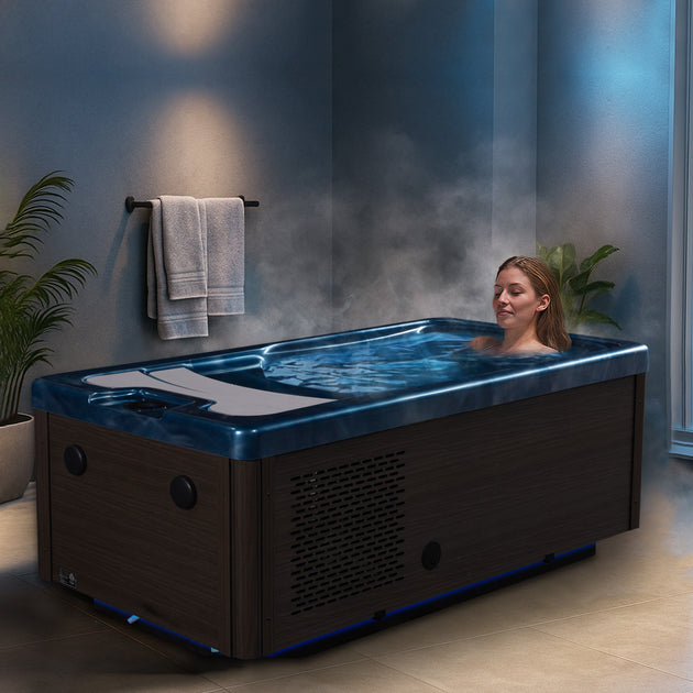 ANZZI 69 in. 1-Person 2-Jets All-in-One Cold Plunge and Hot Tub with Built-in Chiller, Lights, and WiFi in Blue - CP-CH7939BL