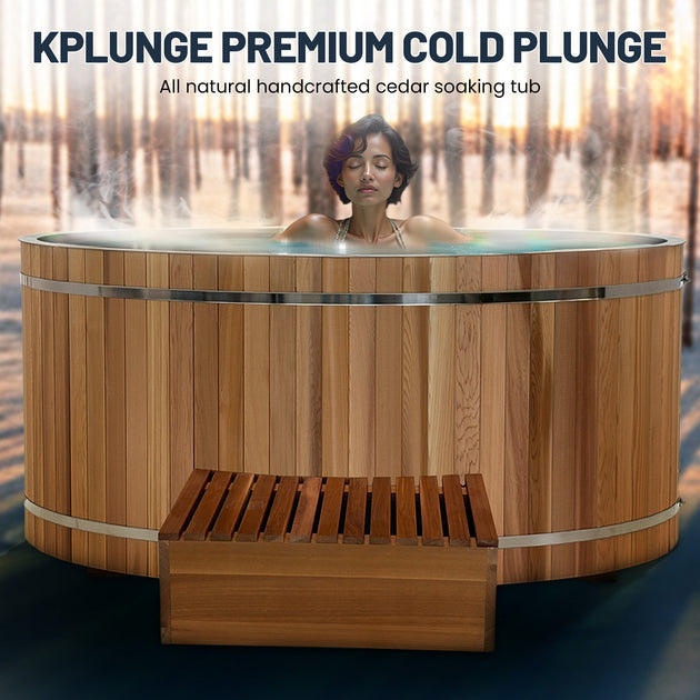 ANZZI 62 in. 2-Person Cedar Cold Plunge Ice Bath Tub/Hot Tub with 1 HP Powerful Chiller and Heater in Natural Finish - CP-C6242CDR1HP