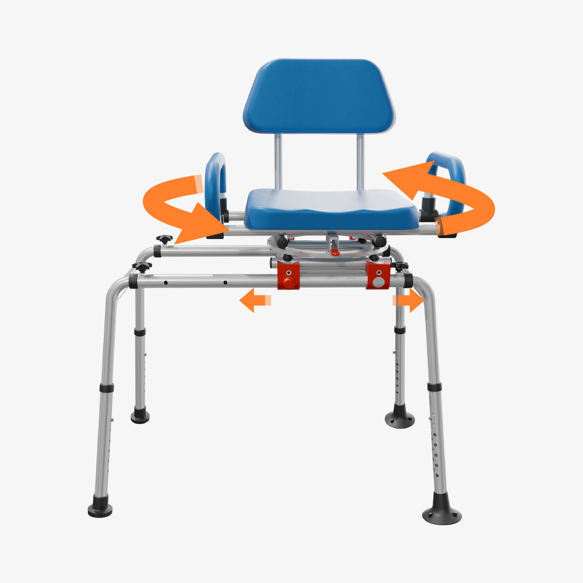 The seat rotates 360° for maximum safety and comfort, allowing users to easily turn to a comfortable position.