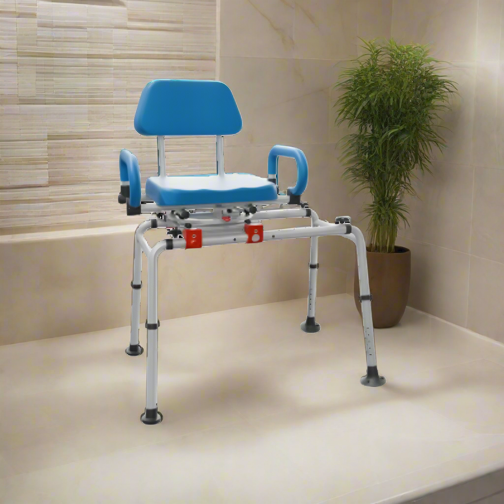 The Vocic Sliding Shower Chair Bathtub Transfer Bench - AX19-A is designed to make bath time safer and more comfortable for individuals with mobility challenges. Featuring a 360° rotating seat and height-adjustable legs, this bath chair ensures maximum safety, ease of use, and convenience. Ideal for individuals who need extra support during bath time, it eliminates the risks associated with traditional bath stools, such as slipping and skin tears, ensuring a smooth and secure transfer.