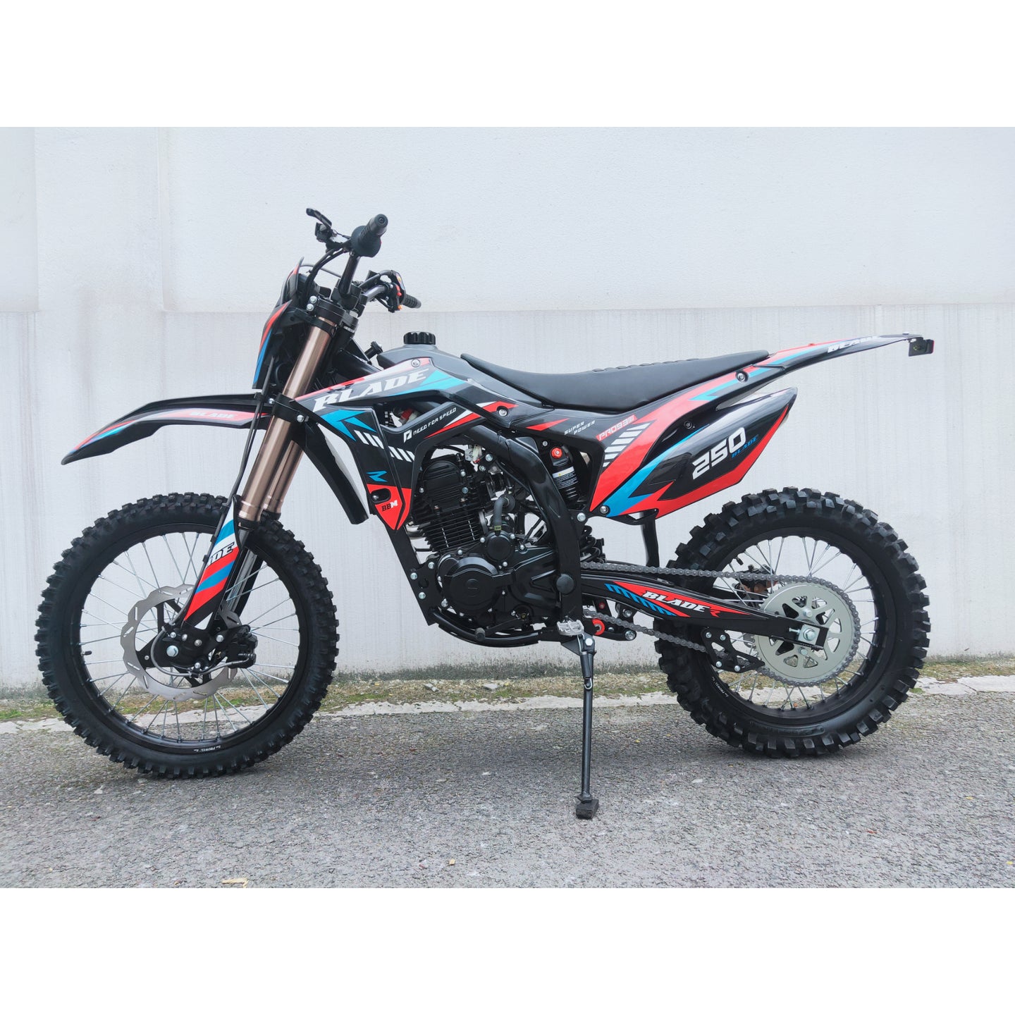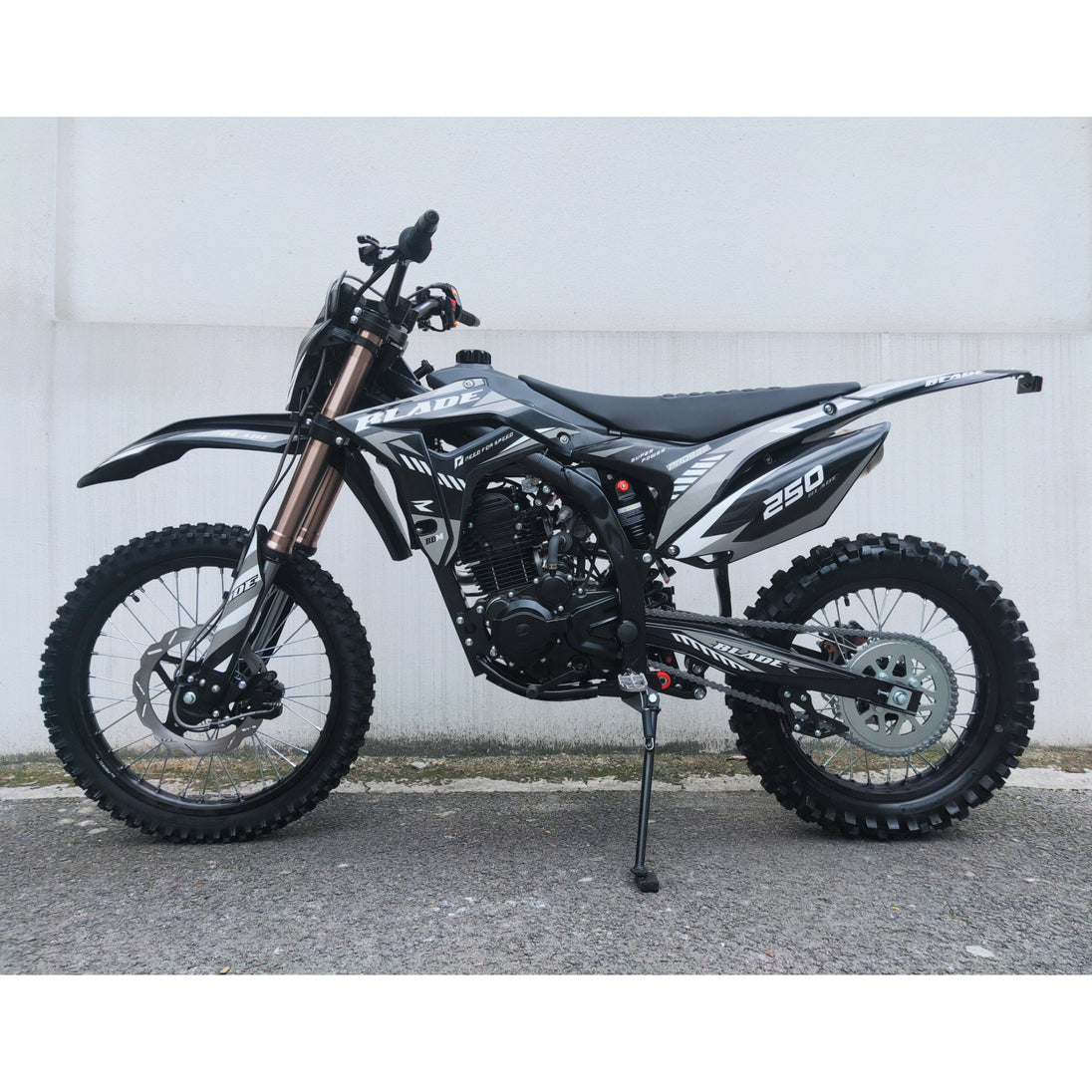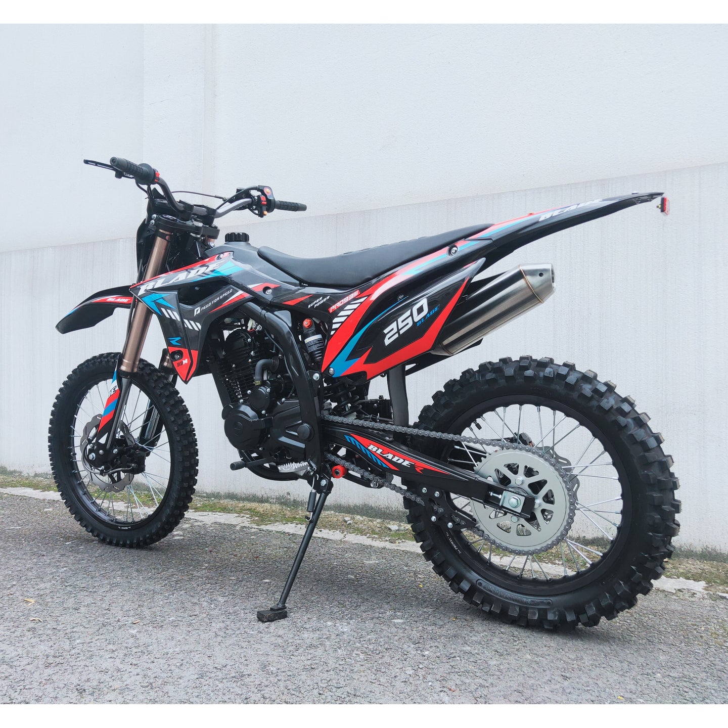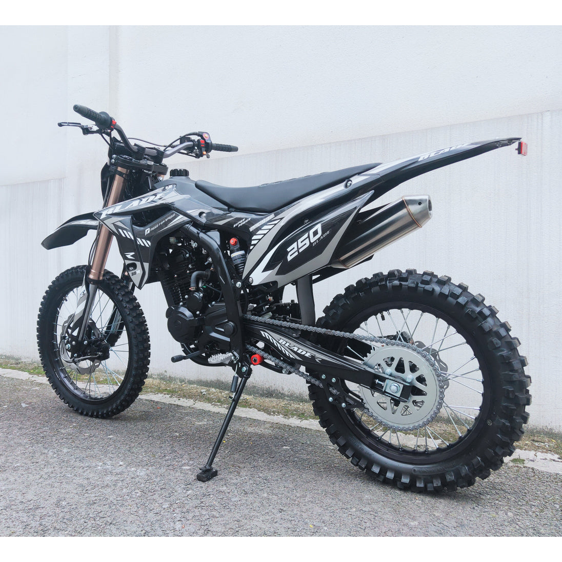 The electric and kick-start dual system ensures reliable launches, while hydraulic disc brakes front and rear combined with aggressive knobby tires provide confident stopping and traction on rough terrain. With stylish graphics and off-road DNA, the RPS Blade 250 is the ultimate dirt-bike performance machine.