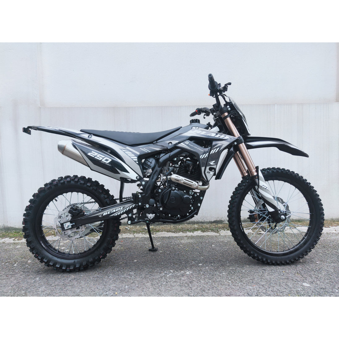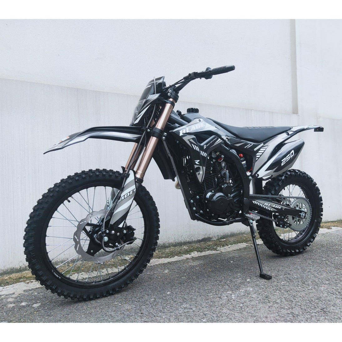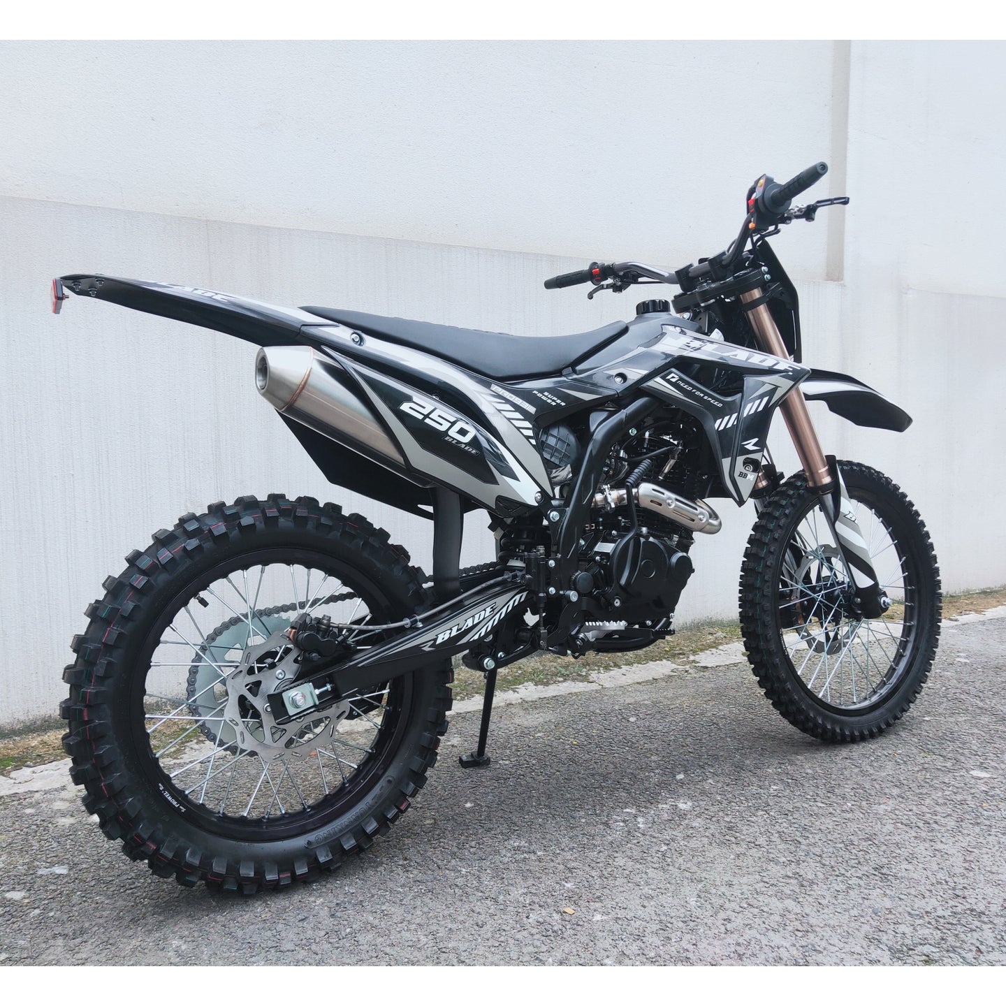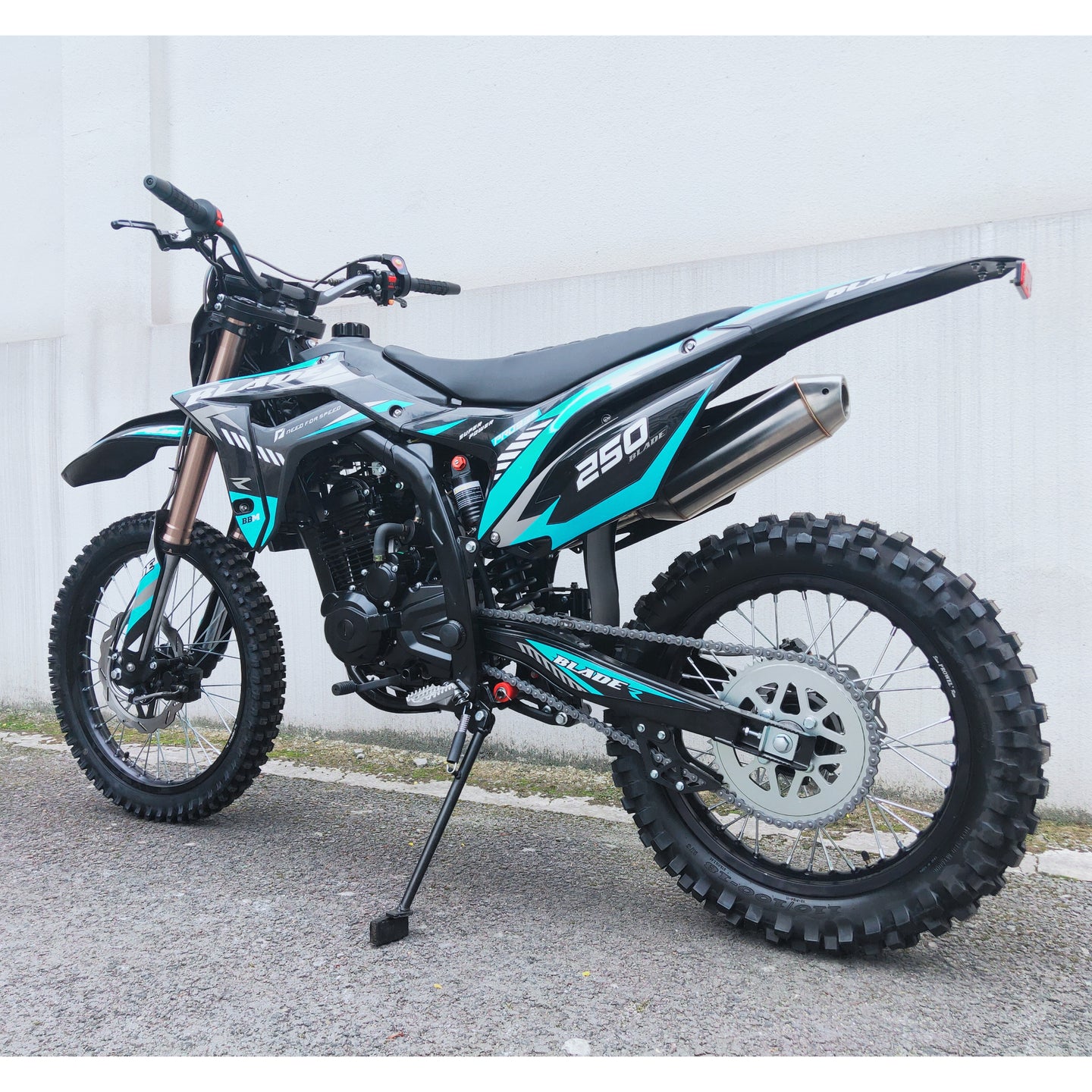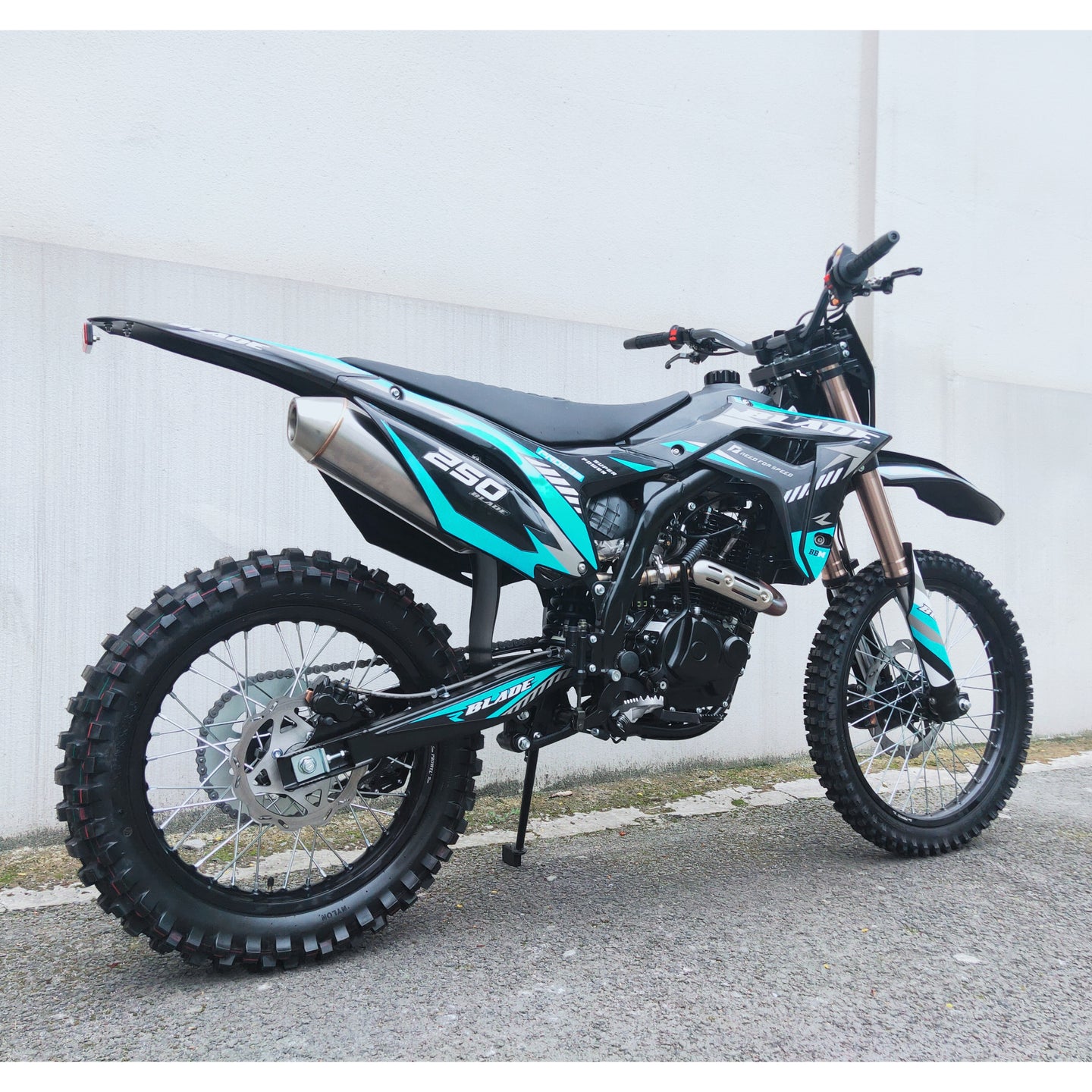 The electric and kick-start dual system ensures reliable launches, while hydraulic disc brakes front and rear combined with aggressive knobby tires provide confident stopping and traction on rough terrain. With stylish graphics and off-road DNA, the RPS Blade 250 is the ultimate dirt-bike performance machine.