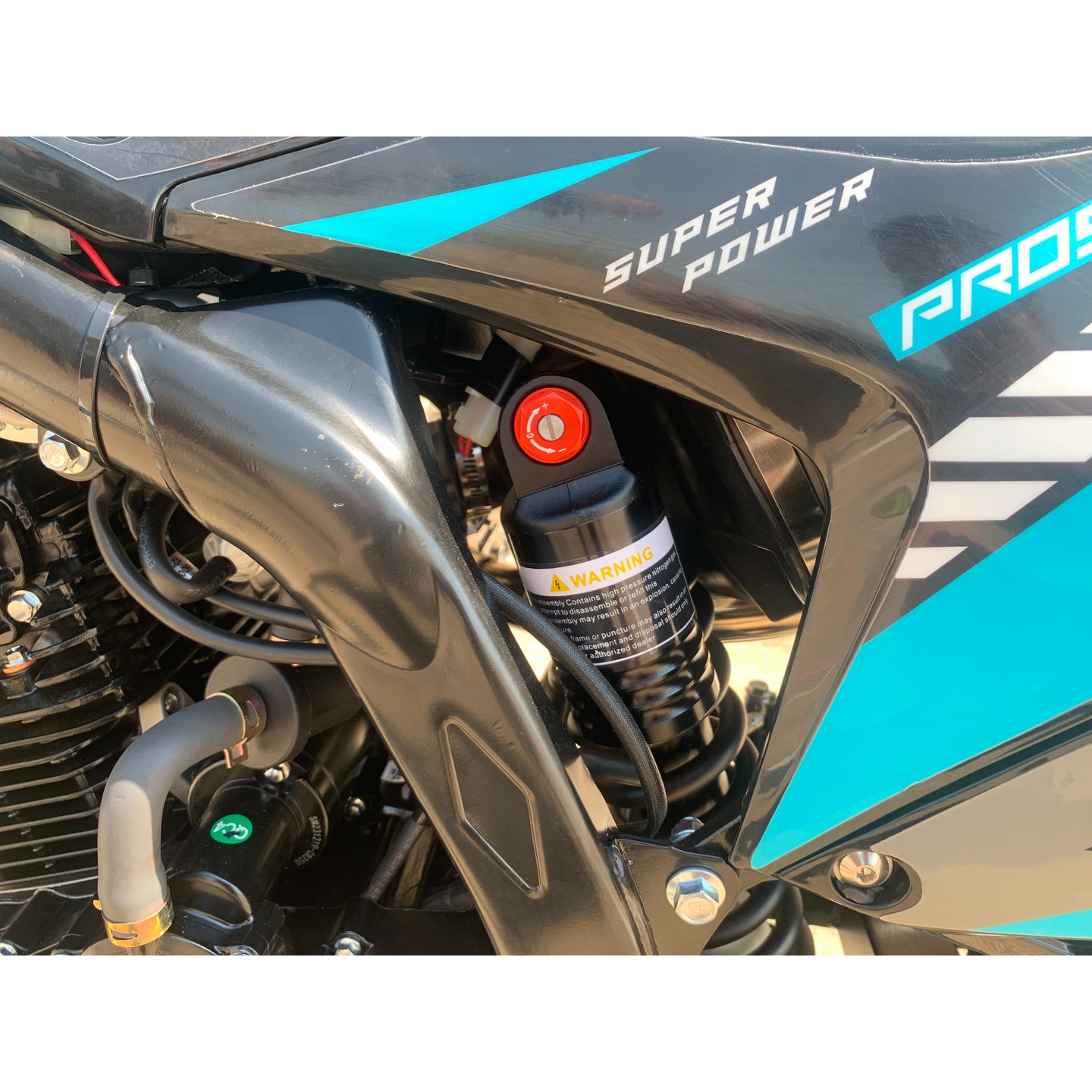 ✅ Adjustable rear shock absorber with swing-arm and inverted front forks — tuned for motocross and trail stability.