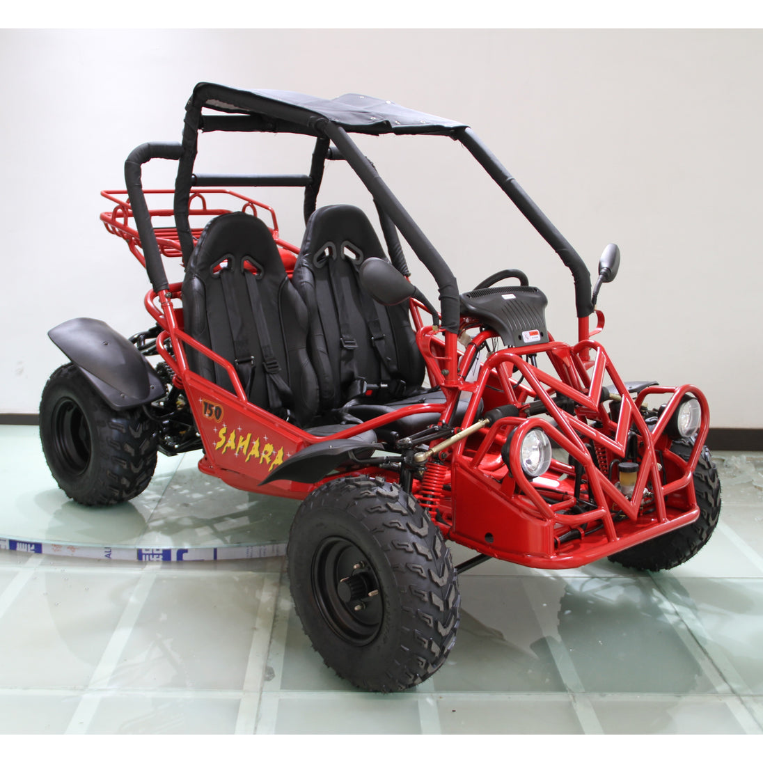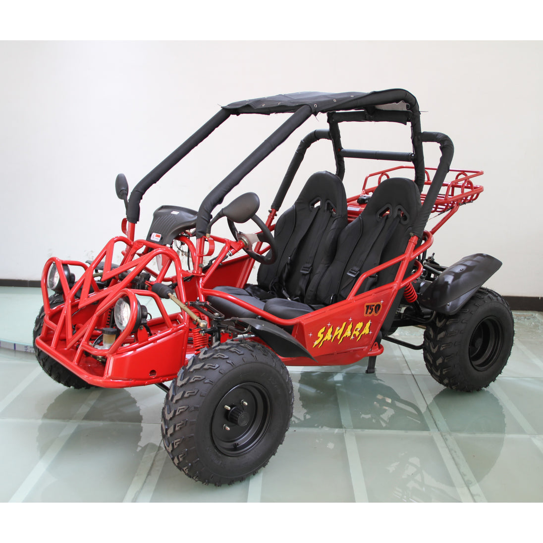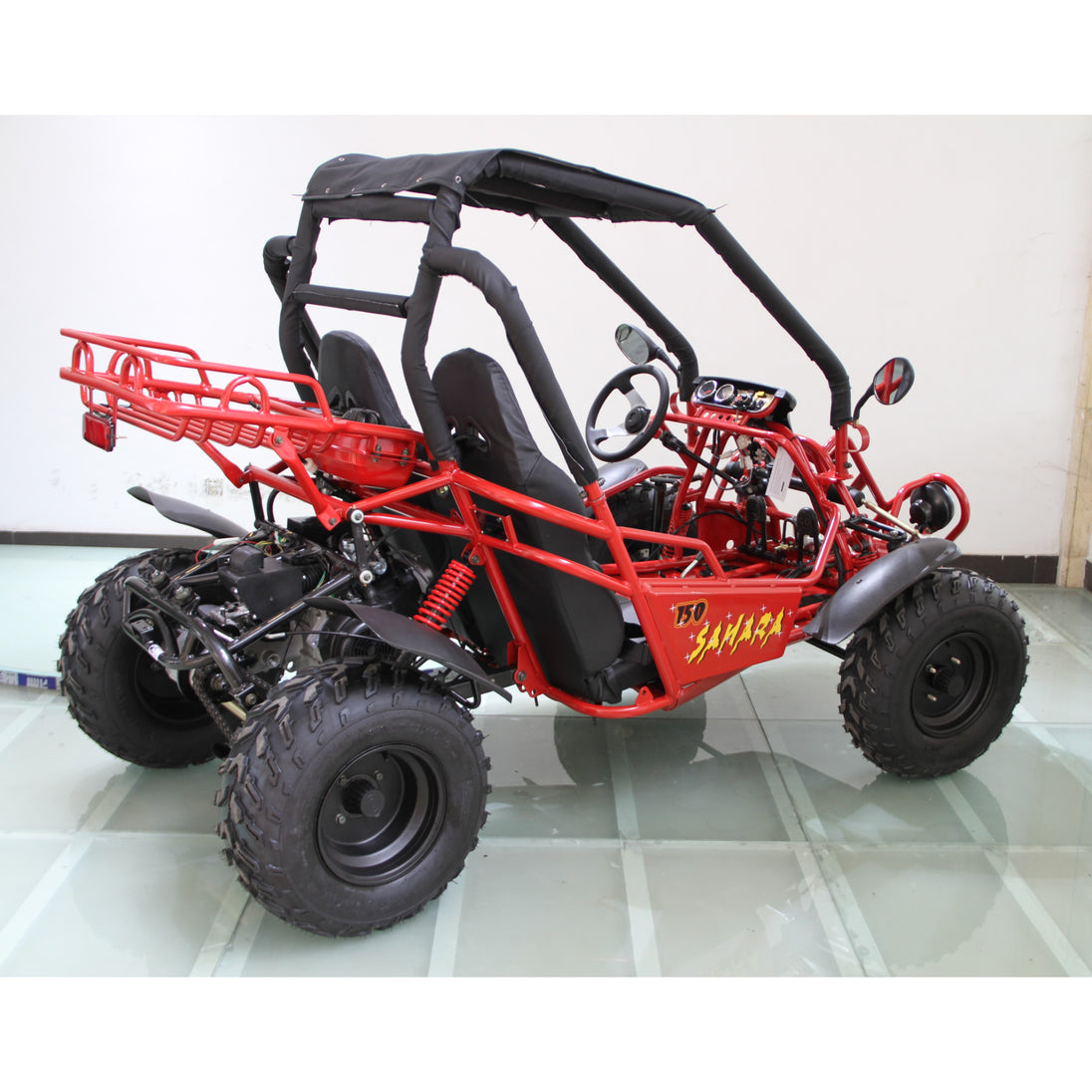 Built on a tough steel frame, it features dual A-arm suspension, hydraulic disc brakes and off-road tires designed for terrain cruising, trail use, or backyard fun. Whether you're exploring property or enjoying weekend rides, the Sahara 150cc combines value, ease-of-use and dependable power for riders of varied experience.