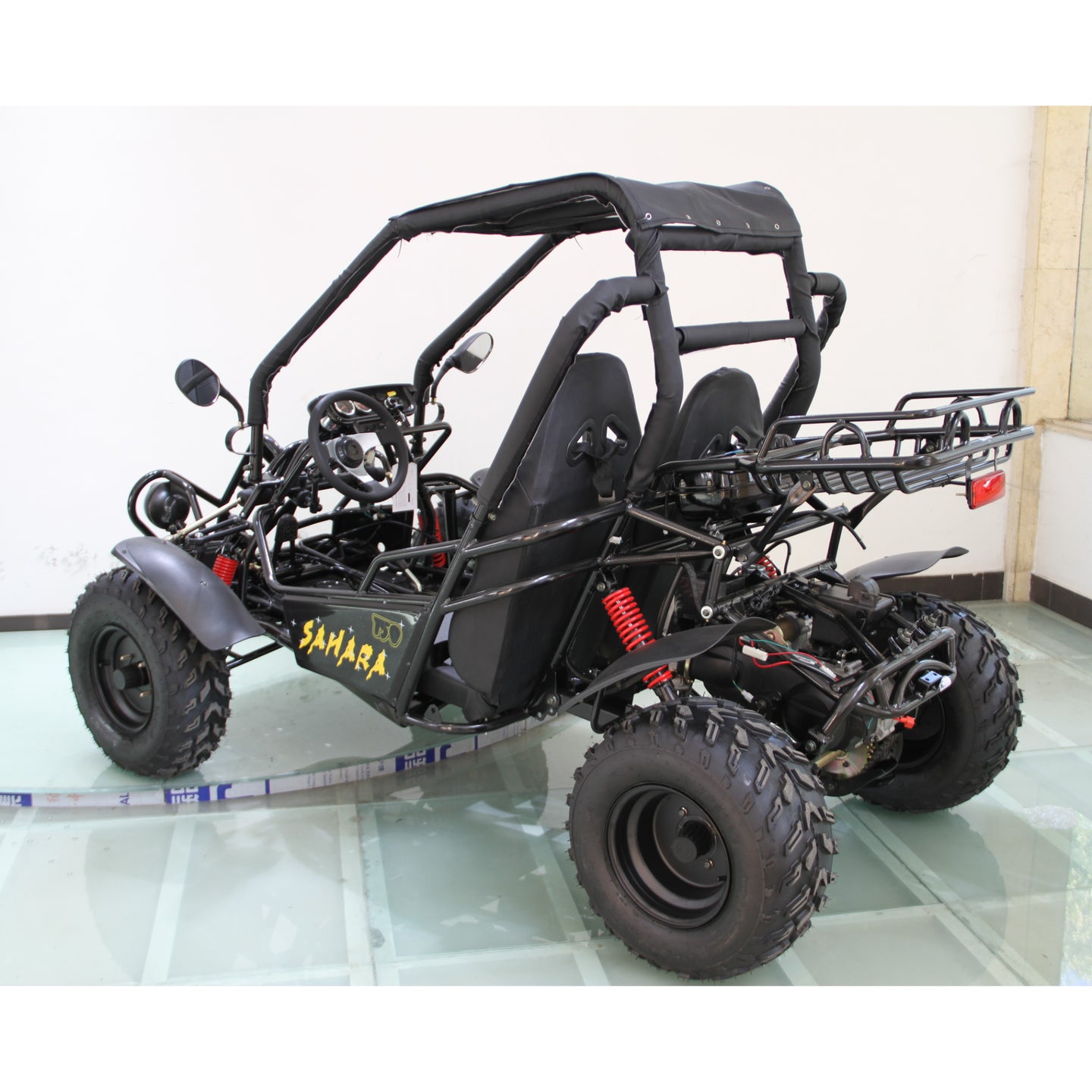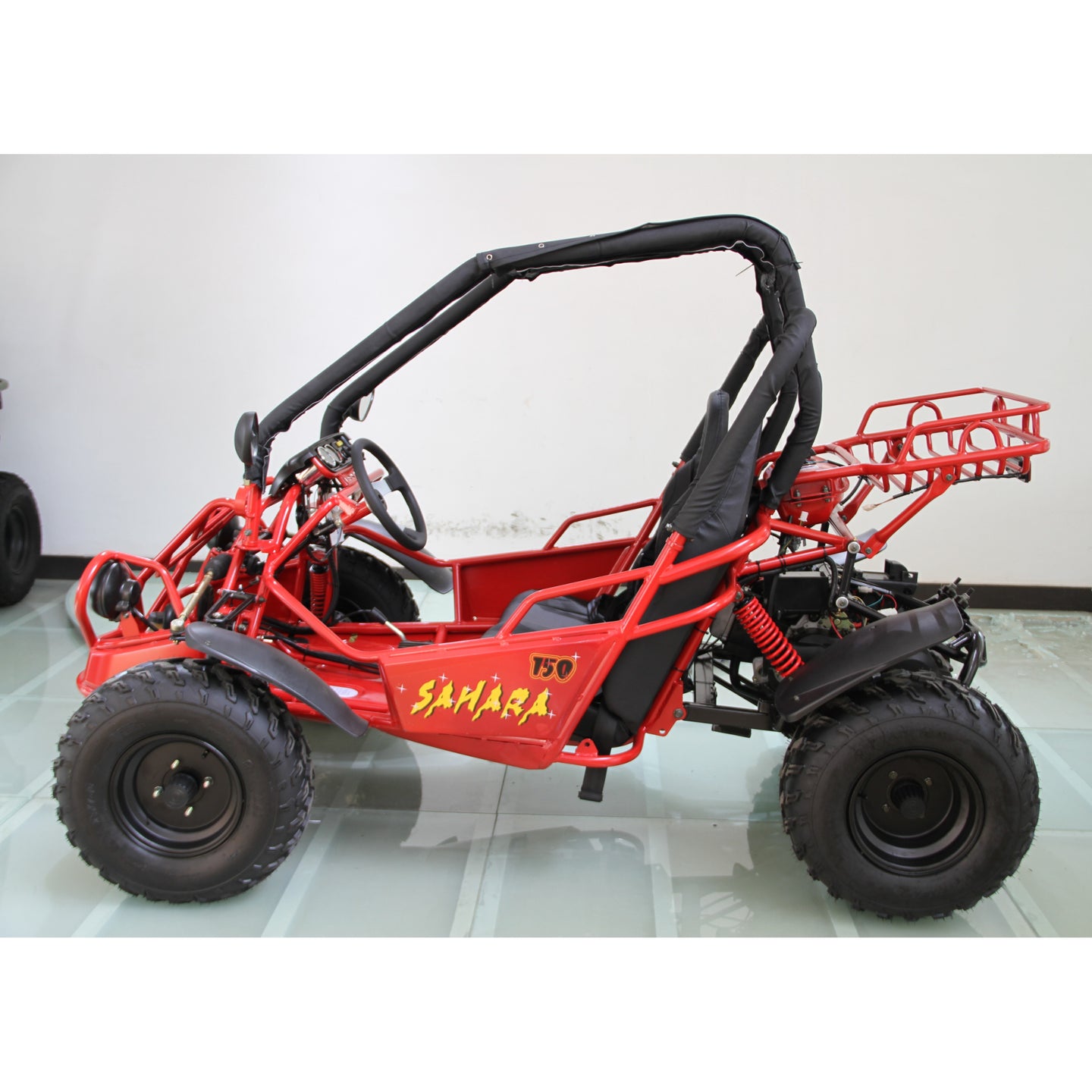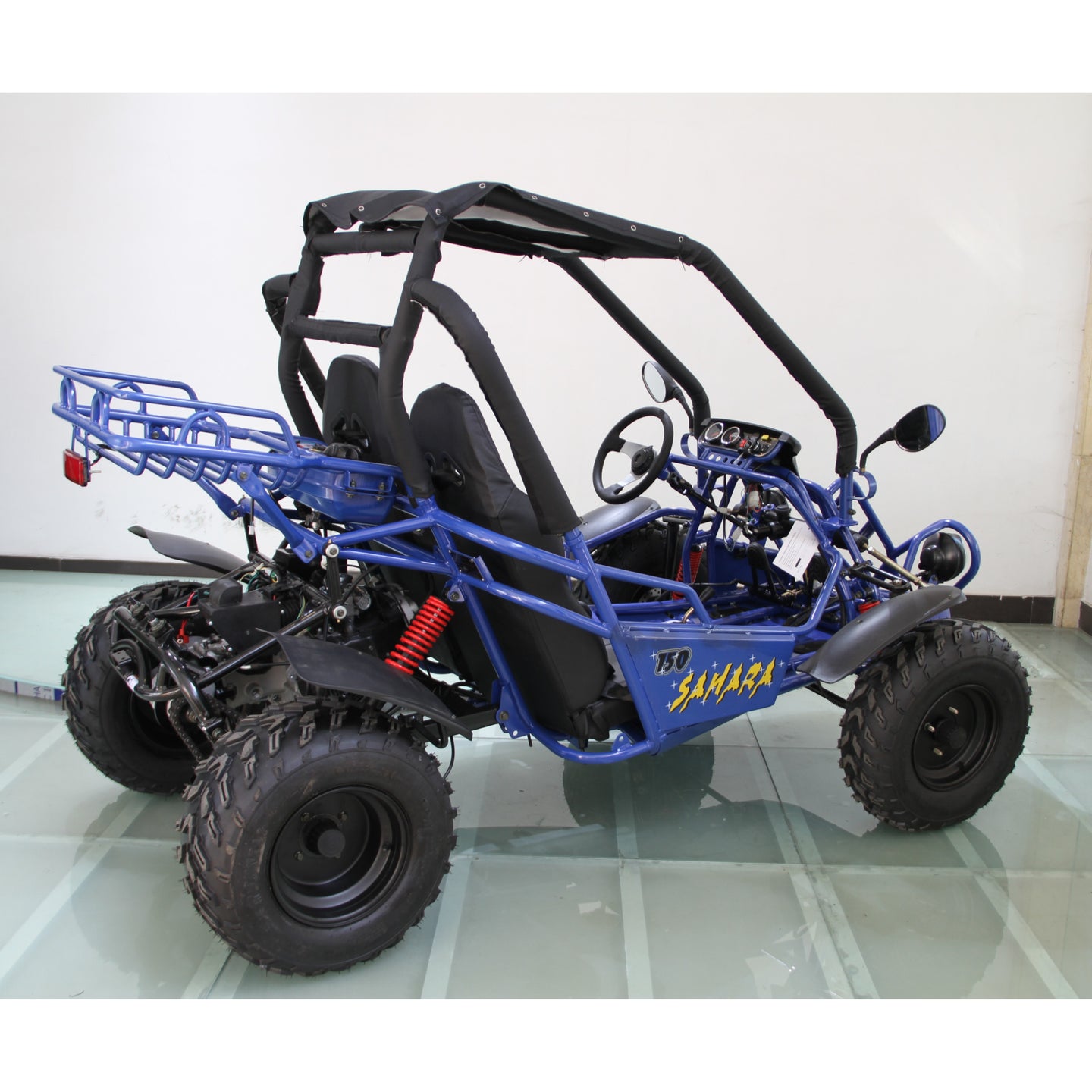 Built on a tough steel frame, it features dual A-arm suspension, hydraulic disc brakes and off-road tires designed for terrain cruising, trail use, or backyard fun. Whether you're exploring property or enjoying weekend rides, the Sahara 150cc combines value, ease-of-use and dependable power for riders of varied experience.