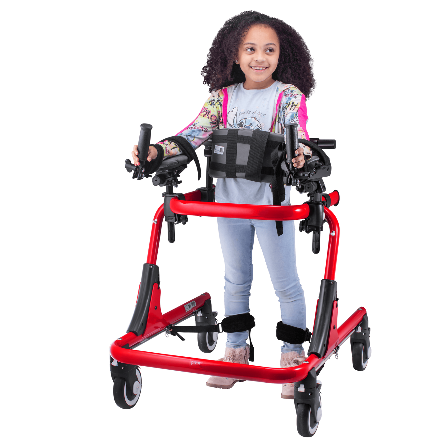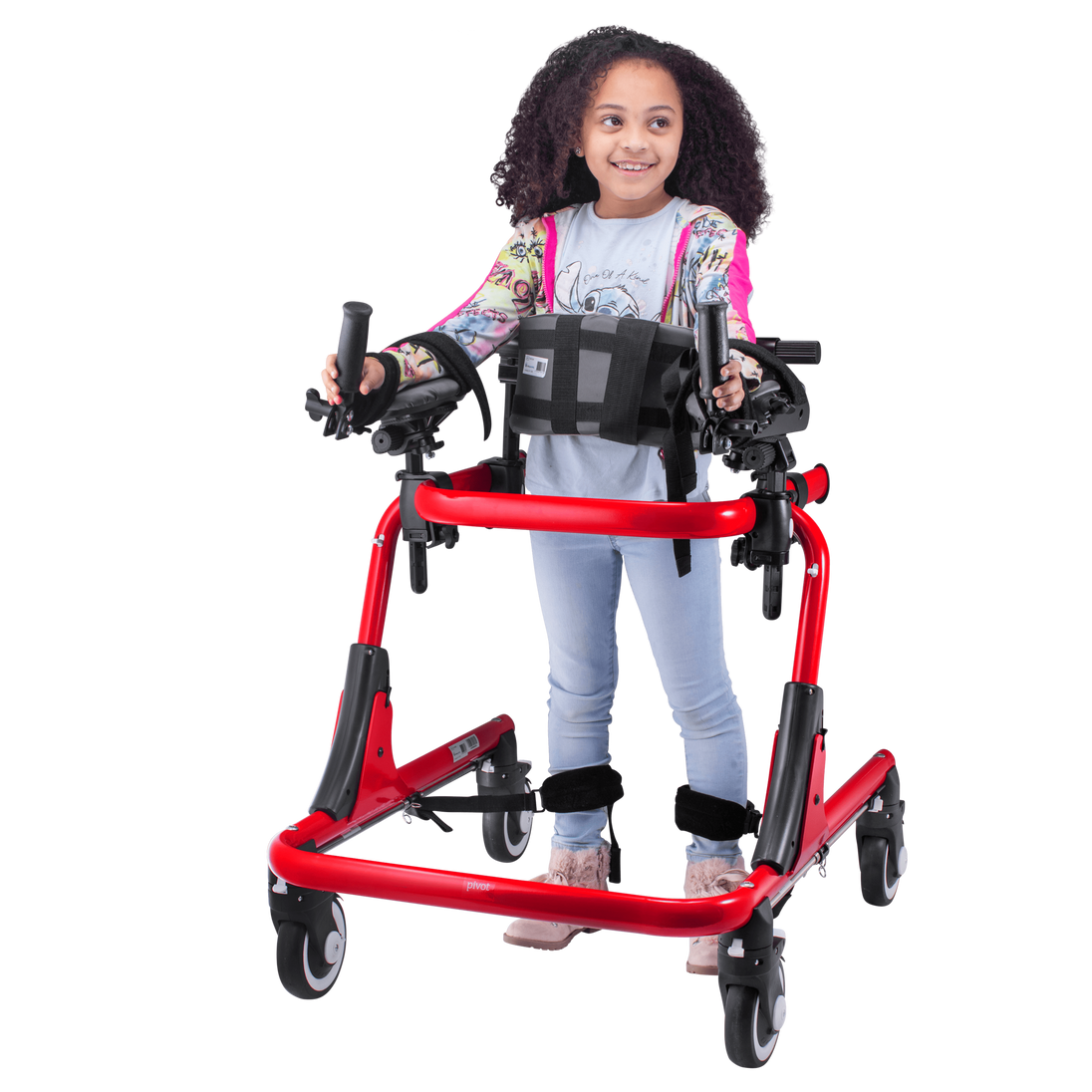 The Circle Specialty Pivot Gait Trainer is a versatile and supportive mobility aid designed for children with varying mobility and postural needs. Ideal for users who require full assistance or those nearing independent walking, this adaptive gait trainer promotes safe, effective movement and postural alignment. Its height-adjustable frame allows for a customized fit, while tool-free adjustable accessories provide varying levels of support as the child’s strength and coordination improve. The Pivot encourages natural gait patterns, helping children build confidence and independence during therapy or daily use.