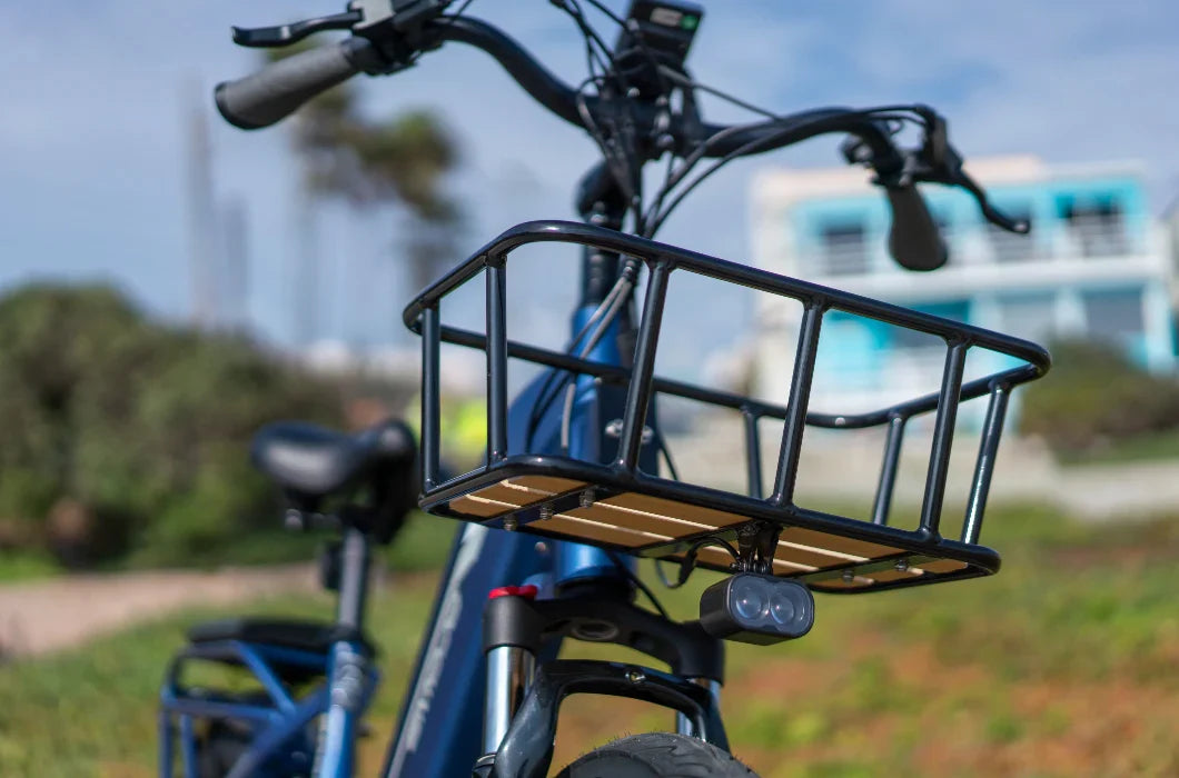 Comfort & Utility: Includes front basket and rear seat cushion for passengers or storage. (family-friendly electric bike)