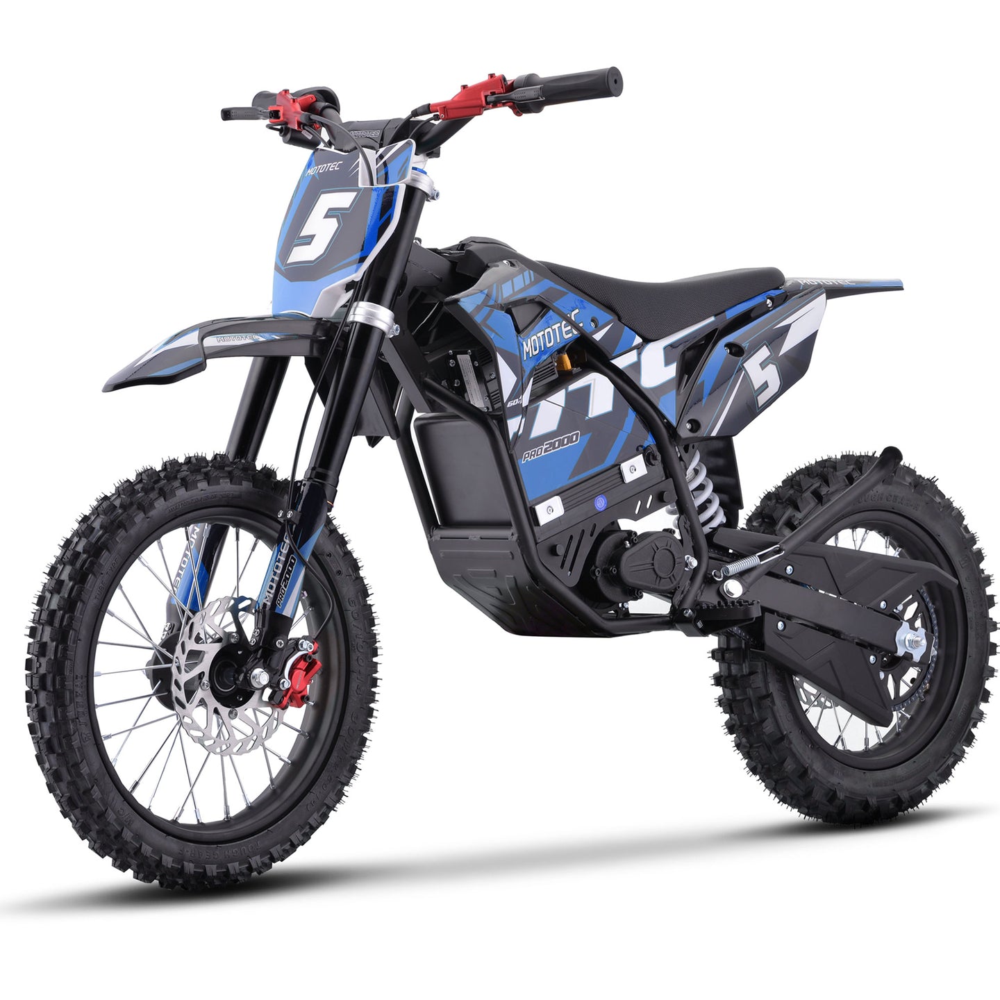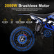 The MotoTec 60v Pro Electric Dirt Bike 2000w Lithium, Blue delivers unmatched power, speed, and performance for young riders and enthusiasts. Powered by a high-output 2000w brushless motor and advanced 60v lithium battery, this dirt bike is lighter, faster, and designed for longer ride times. Ideal for driveway fun, backyard adventures, or dirt track racing, it features quick-release battery technology for easy charging on or off the bike.