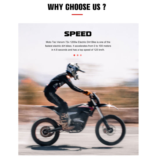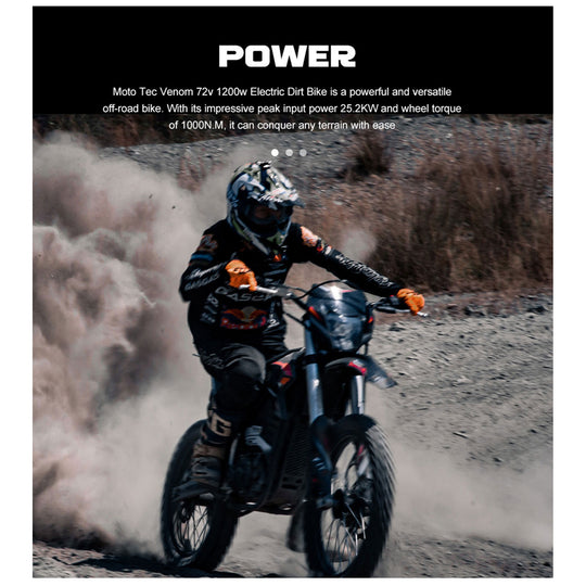 No reviewsUnleash extreme power with the MotoTec Venom 72v 12000w Electric Dirt Bike, Black. Built after 2 years of development, this high-performance electric dirt bike delivers up to 77 MPH top speed, making it perfect for racing,...Sale price $4,999.00Regular price $5,799.00Sale price $4,999.00Regular price $5,799.00