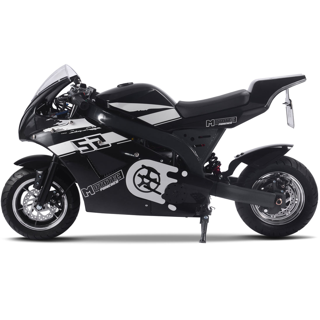 ✅ Stylish Black Superbike Frame – Sleek, modern design with a sporty look that stands out from traditional pocket bikes.