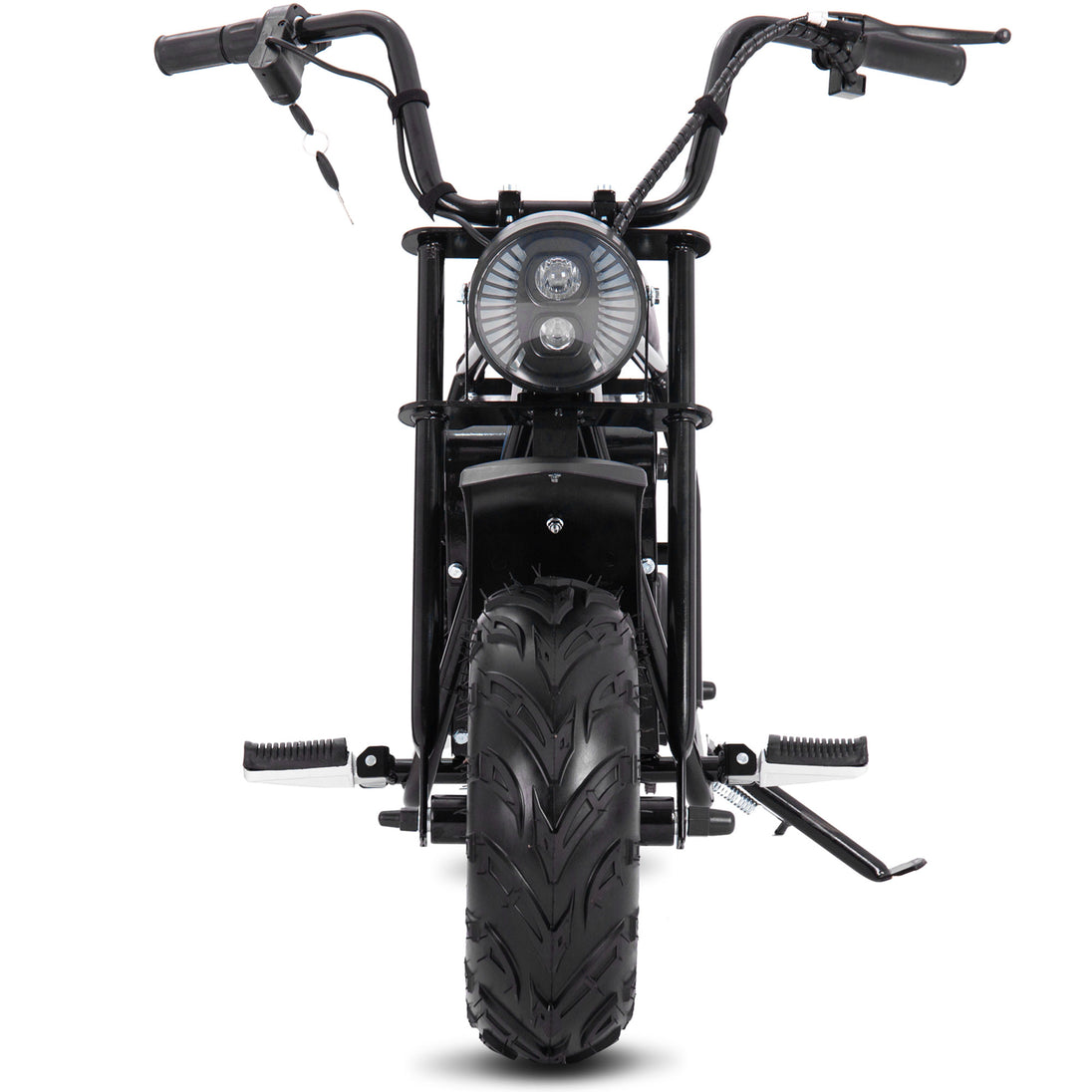 Equipped with a bright front headlight and reliable chain drive, this electric mini bike combines durability, control, and fun. Perfect for backyard, driveway, or off-road rides, it delivers exciting and safe electric-powered adventures.