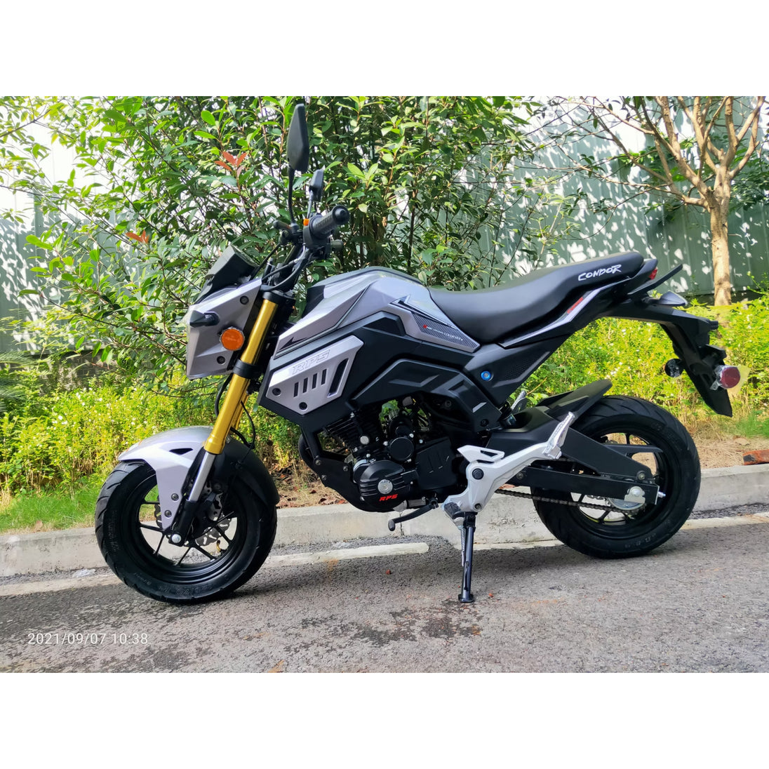 The Ricky Power Sports RPS Condor 150cc 4-Stroke Motorcycle – LY-150-2B-CON combines sleek urban styling with practical street performance at exceptional value. Powered by a responsive 149.4cc 4-stroke single-cylinder engine, it delivers 11 HP and a top speed up to 62 MPH—making it ideal for city commuting and beginner riders alike. With a 5-speed manual transmission, dual hydraulic disc brakes front and rear, and agile 12-inch wheels, the RPS Condor 150 provides confident road handling and rider-friendly ergonomics.
