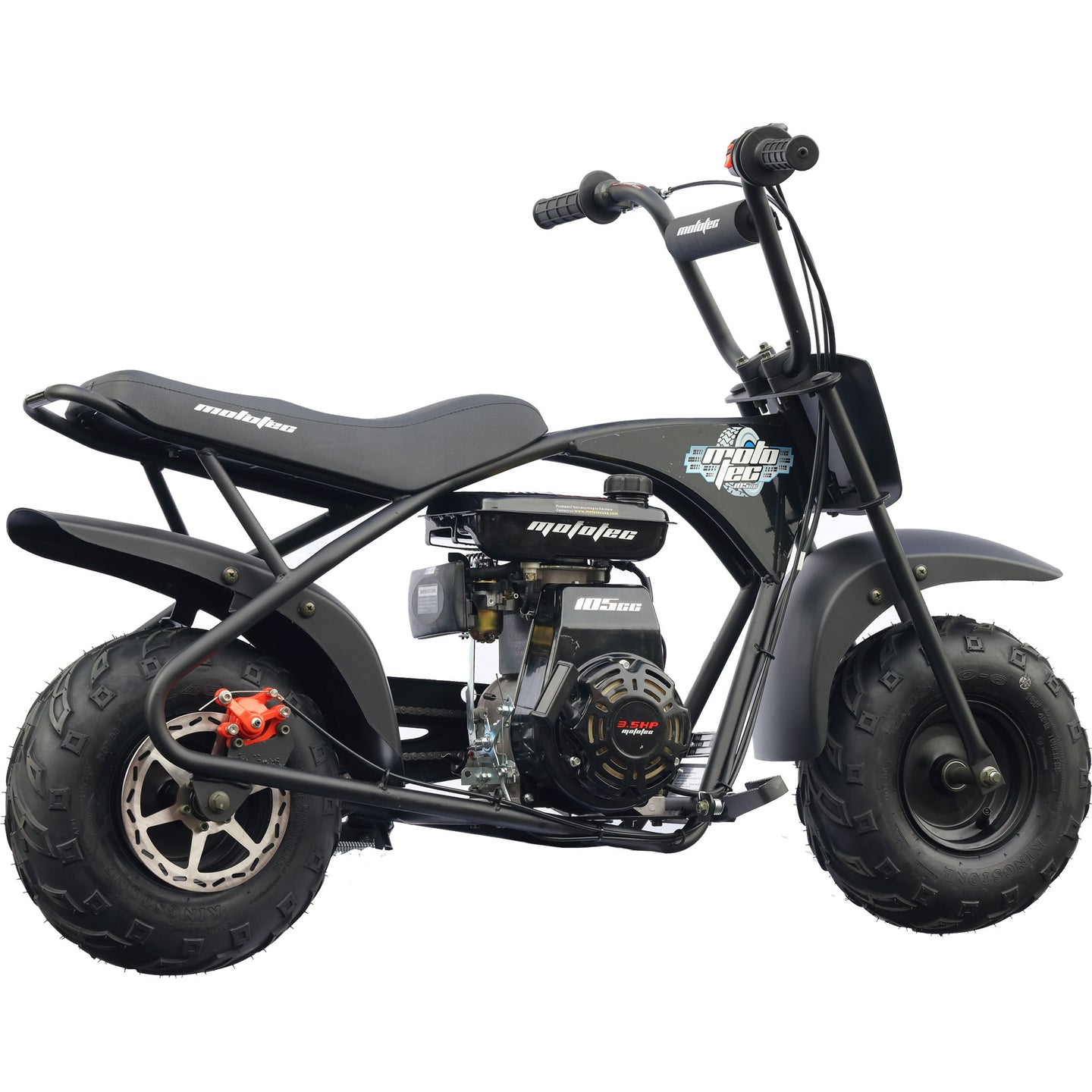 The MotoTec 105cc 3.5HP Gas Powered Mini Bike delivers classic mini bike thrills with modern safety and convenience. Powered by a 105cc 4-stroke overhead valve engine, it offers 3.5HP of reliable power without the hassle of mixing gas and oil. The automatic clutch ensures smooth, easy operation for riders of all skill levels. Built with a rugged steel frame and durable no-dent fenders, this mini bike handles rough terrain with confidence. Perfect for recreational riding, racing, or outdoor fun, it’s a lightweight, durable, and high-performance mini bike for enthusiasts seeking adventure.