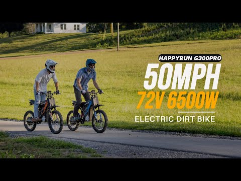 The HappyRun 6500W Electric Dirt Bike – G300 Pro delivers thrilling performance for riders seeking a high-speed electric dirt bike built for serious off-road action. As one of the most affordable adult electric dirt bikes capable of reaching up to 50 mph, the 2025 G300 Pro features a rugged carbon steel forged frame and a newly upgraded 6500W peak motor. With increased drive-wheel torque and five adjustable speed levels, it offers powerful acceleration and total control on trails, dirt roads, and open terrain.