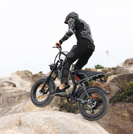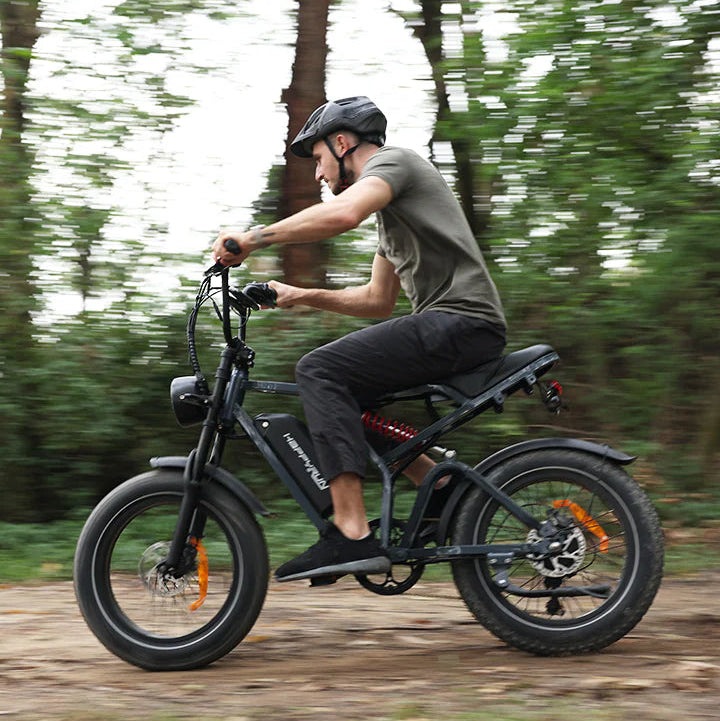 Powered by a 1000W motor with 2000W peak output, the G60 Pro reaches speeds of up to 36 mph, delivering strong acceleration and confident hill climbing. Its 4-inch fat tires provide excellent grip and stability on pavement, gravel, sand, and trails. Whether you’re navigating city streets or tackling rugged terrain, the HappyRun G60 Pro off-road electric bike delivers a smooth, thrilling, and dependable ride every time.