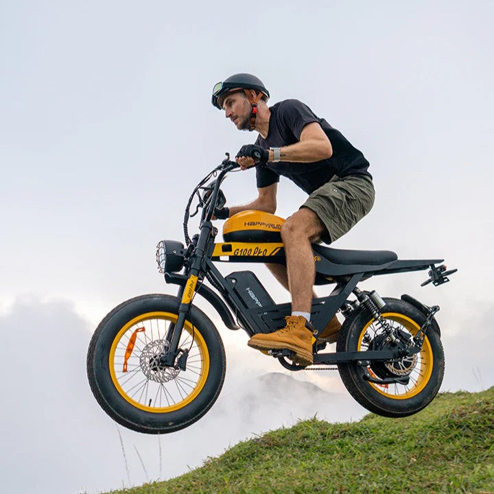 The HappyRun G100 Pro 6000W Electric Bike is a high-performance electric bike engineered for experienced riders who demand power, speed, and long-range capability. Built as the upgraded evolution of the best-selling G100, this dual-battery electric bike features a ferocious 6000W peak motor that delivers explosive acceleration and a thrilling top speed of up to 50 MPH, making it ideal for both aggressive street riding and off-road adventures.