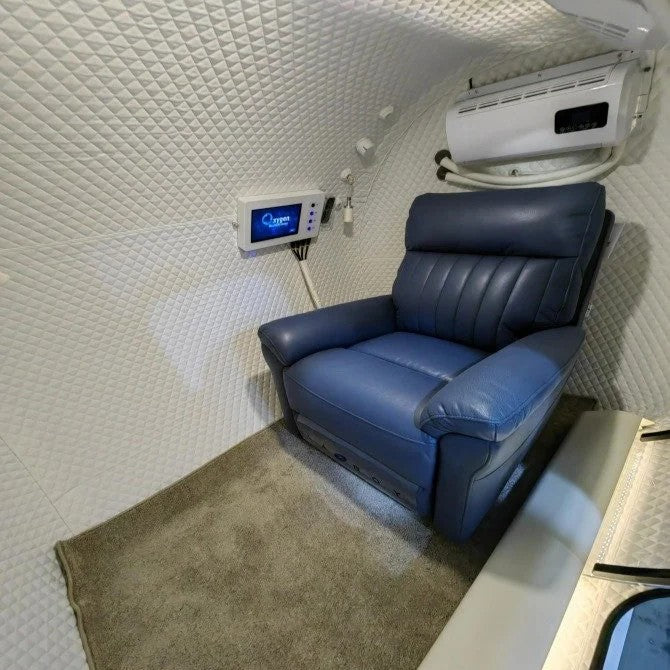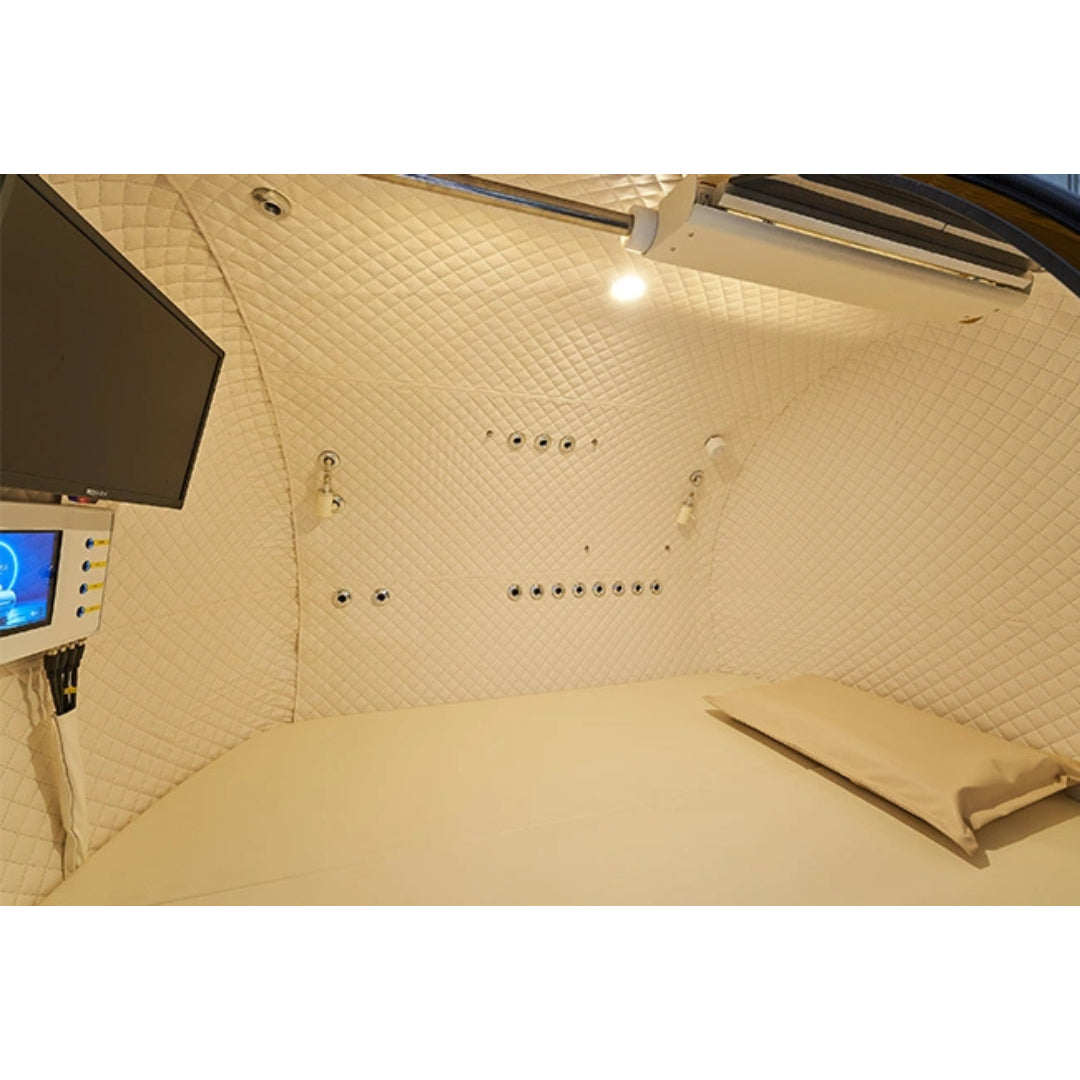 The Macy-Pan HE 5000 Standard 2.0 ATA HBOT Chamber is a premium hard-shell hyperbaric oxygen chamber engineered for users seeking clinical-grade performance, comfort, and reliability. Designed for advanced hyperbaric oxygen therapy, it features an integrated all-in-one control system, a powerful 20 LPM oxygen concentrator, and a built-in air conditioning unit to maintain a cool, safe, and comfortable treatment environment during every session.