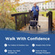 Engineered with a patented Balanced Center of Gravity, the UPWalker EZ Lite offers superior stability and reduced tipping risk. Weighing only 16 lbs., this lightweight rollator walker is easy to maneuver on indoor floors or outdoor terrain.