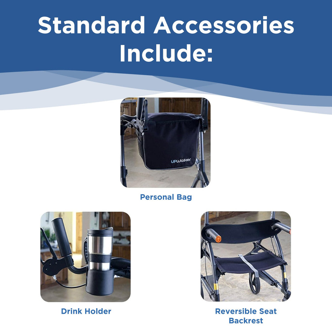 The UPWalker EZ Lite folds effortlessly for travel or storage and arrives ready to use—no tools needed. It’s the most budget-friendly rollator in the UPWalker line, offering premium support at an exceptional value.