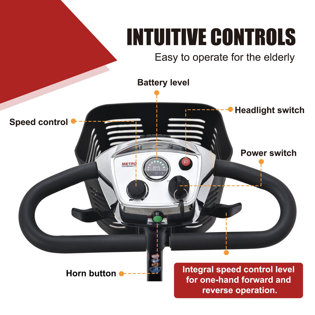 Experience exceptional comfort, style, and reliability with the Metro Mobility M1 Limited Edition Mobility Scooter — the ultimate high-performance 4-wheel mobility scooter for seniors and adults seeking independence and safety. Powered by a robust 300W motor, this mobility scooter delivers smooth and stable rides with a maximum speed of 4.97 mph and a driving range of up to 10 miles on a single charge.