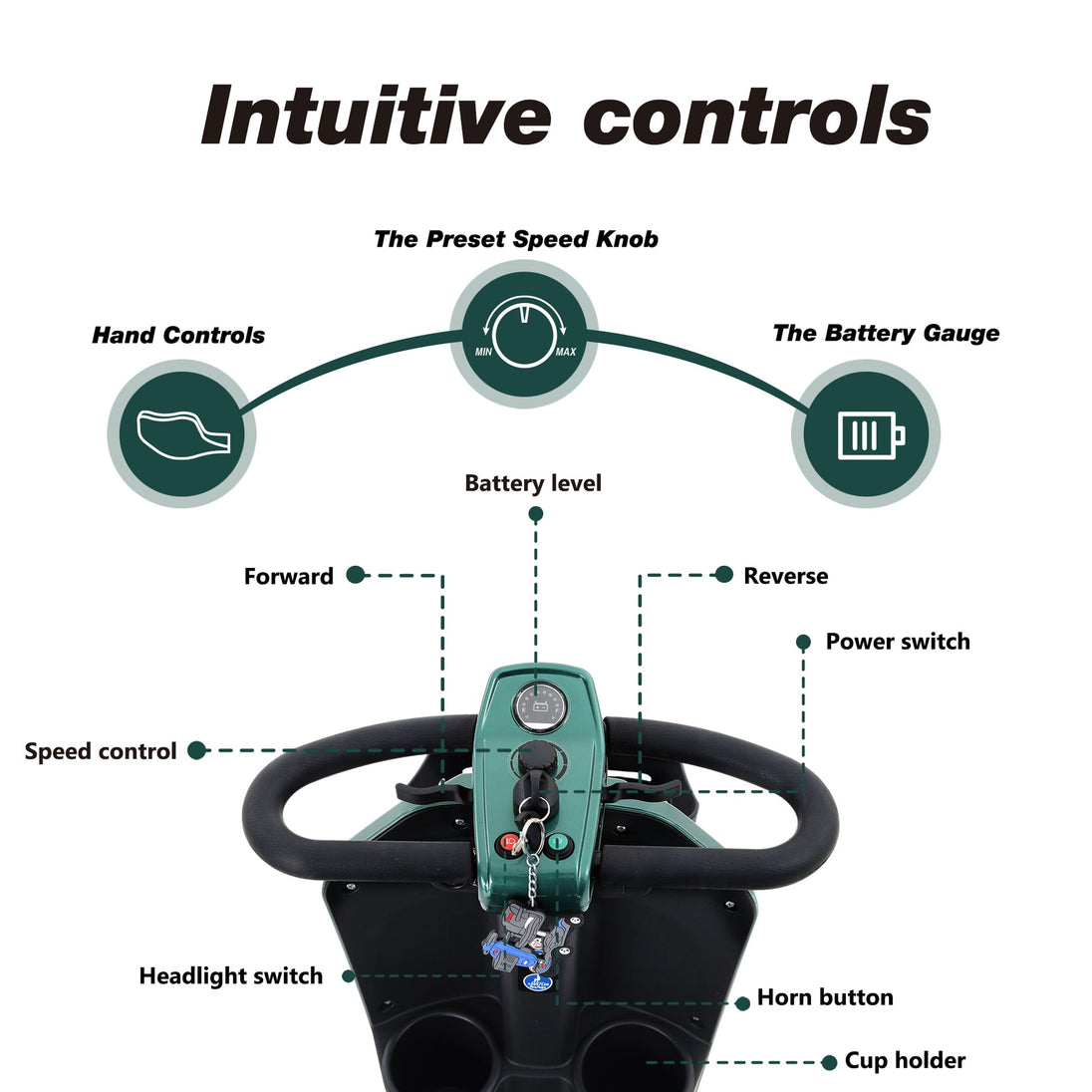 Designed with safety in mind, this mobility scooter features anti-tip wheels, durable 9-inch airless tires, and a sturdy 300 lbs weight capacity—ensuring a stable and secure ride wherever you go.