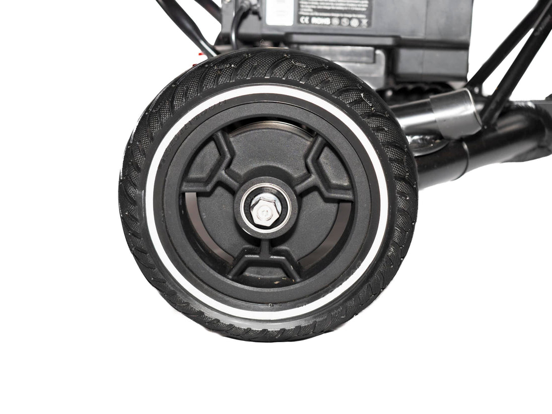 Enhanced Safety: Front and rear LED lights, electronic motor brake, and never-flat honeycomb tires.