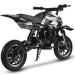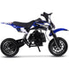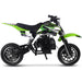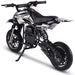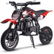 The MotoTec Alien 50cc 2-Stroke Kids Dirt Bike is the perfect starter dirt bike for young riders. Its powerful 2-stroke engine delivers nearly double the power of a 4-stroke, with easy pull start and improved carburetor for reliable performance. Built with a durable steel frame, motocross styling, and real rubber tires, it handles wet and dry conditions with ease. Featuring disc brakes, telescopic forks, and mono shock suspension, this kids gas dirt bike ensures safety, comfort, and control. Fully automatic, just twist the throttle and go—ideal for beginners seeking outdoor off-road fun.