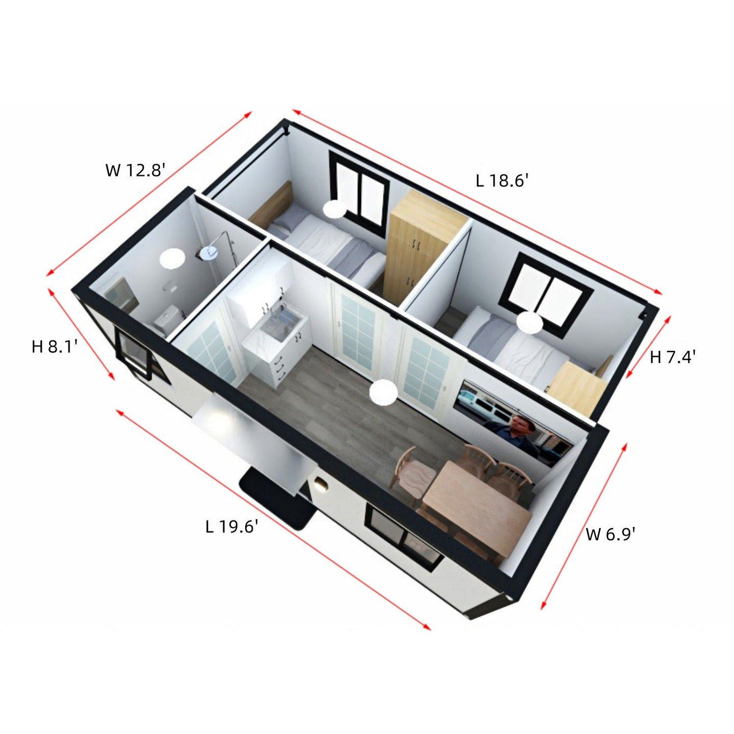 Expanded Dimensions (L × W × H) 19.6' × 12.8' × 8.1' (After expansion)