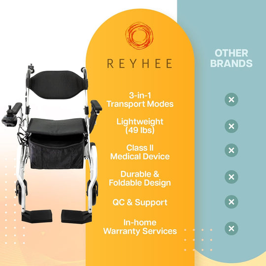 The Reyhee Superlite 3-in-1 Electric Foldable Wheelchair is a versatile, FDA-cleared mobility solution, designed for ease of travel and adaptability. Its innovative design allows it to function as a power wheelchair, power rollator, or manual rollator,...Regular price $1,299.00Regular price $1,299.00 -