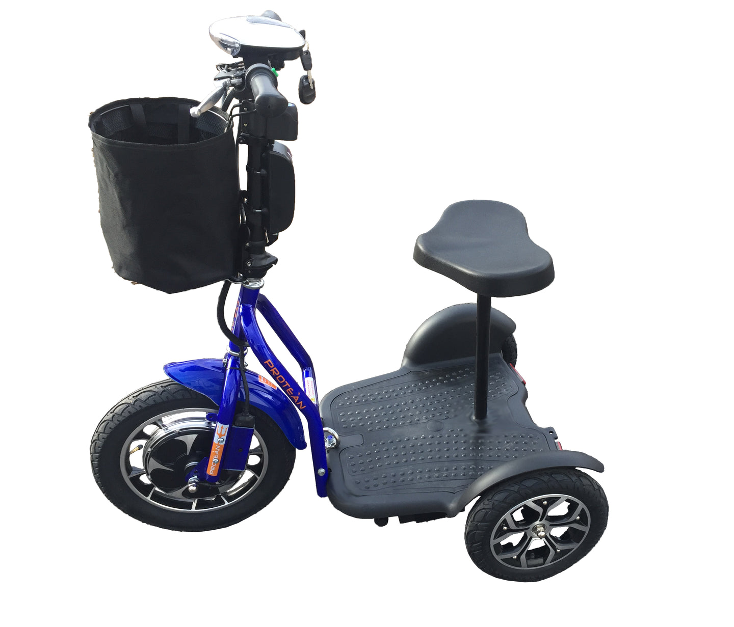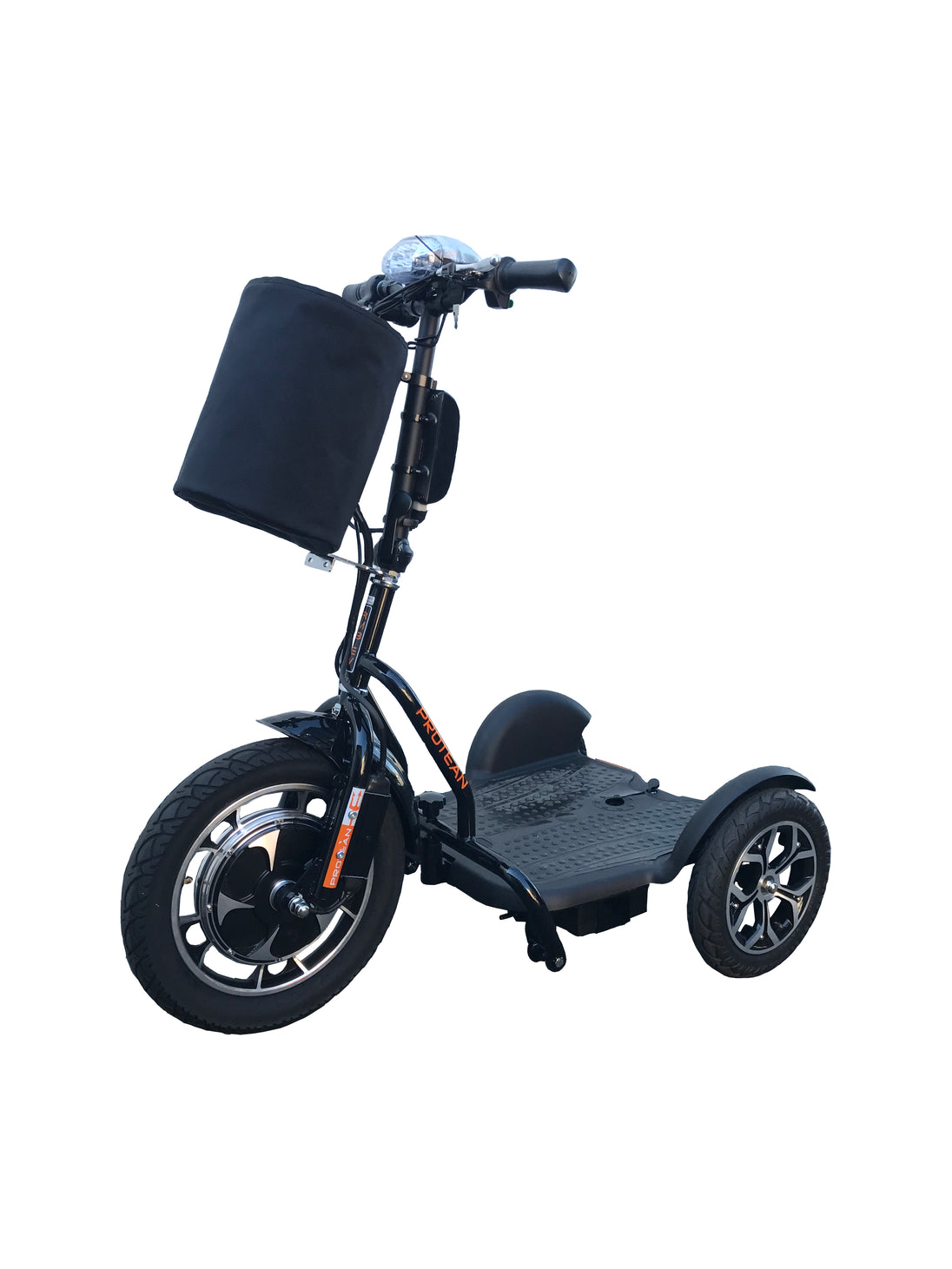 The RMB Protean Folding Scooter is a compact, powerful solution designed for mobility, utility, and convenience. Powered by a 500W, 48V brushless motor, it boasts a top speed of 16 mph and a range of up to 30 miles per charge. Its foldable design and flat floor deck make it ideal for RV travel, warehouse use, and easy transport. Standard features include a dual USB port, LED lighting, adjustable seat, reverse switch, and an EZ swap battery pack. Airline-approved battery options are available, making this scooter travel-ready.