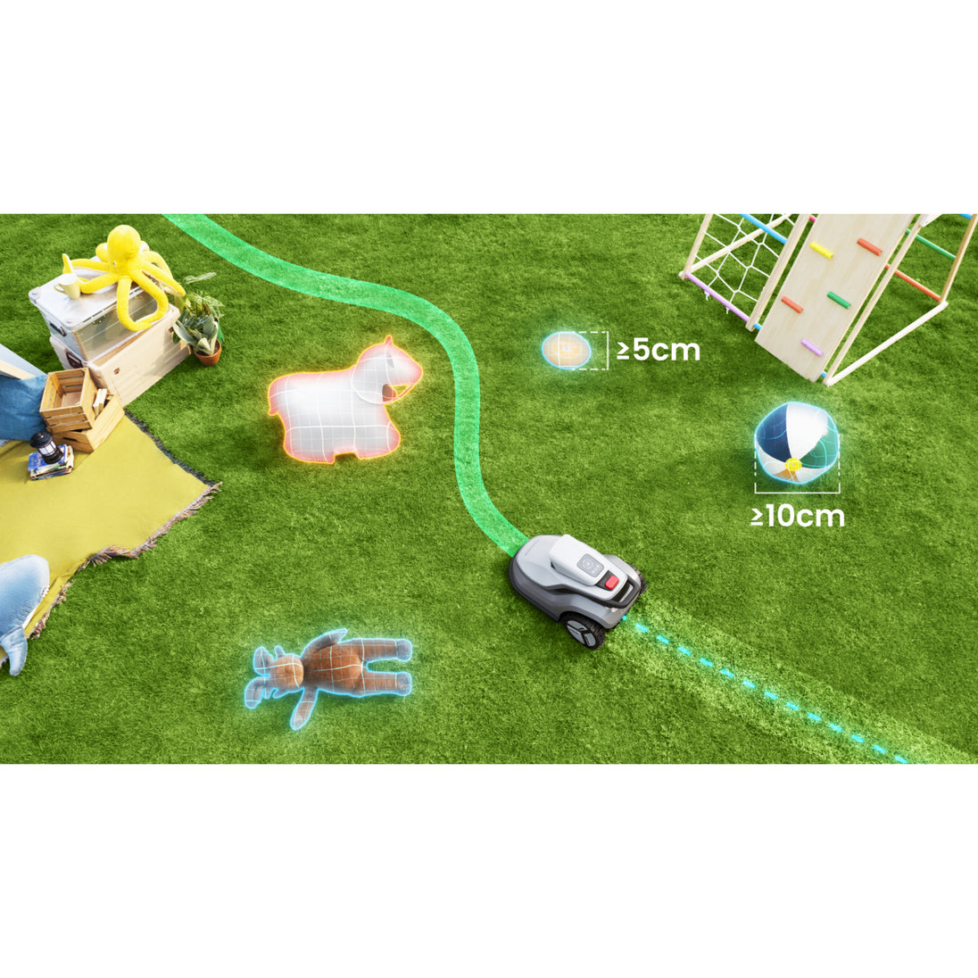 ✅ 3D Obstacle Avoidance Technology: Advanced sensors detect and avoid obstacles such as furniture, pets, and garden features for safe, uninterrupted mowing.