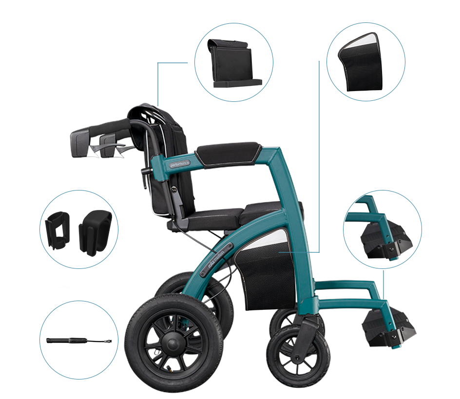 This durable 2-in-1 rollator and transport wheelchair is specifically designed for frequent outdoor use, combining ergonomic support with practical functionality. Whether walking or riding, you can trust the Rollz Motion Performance to take you further.