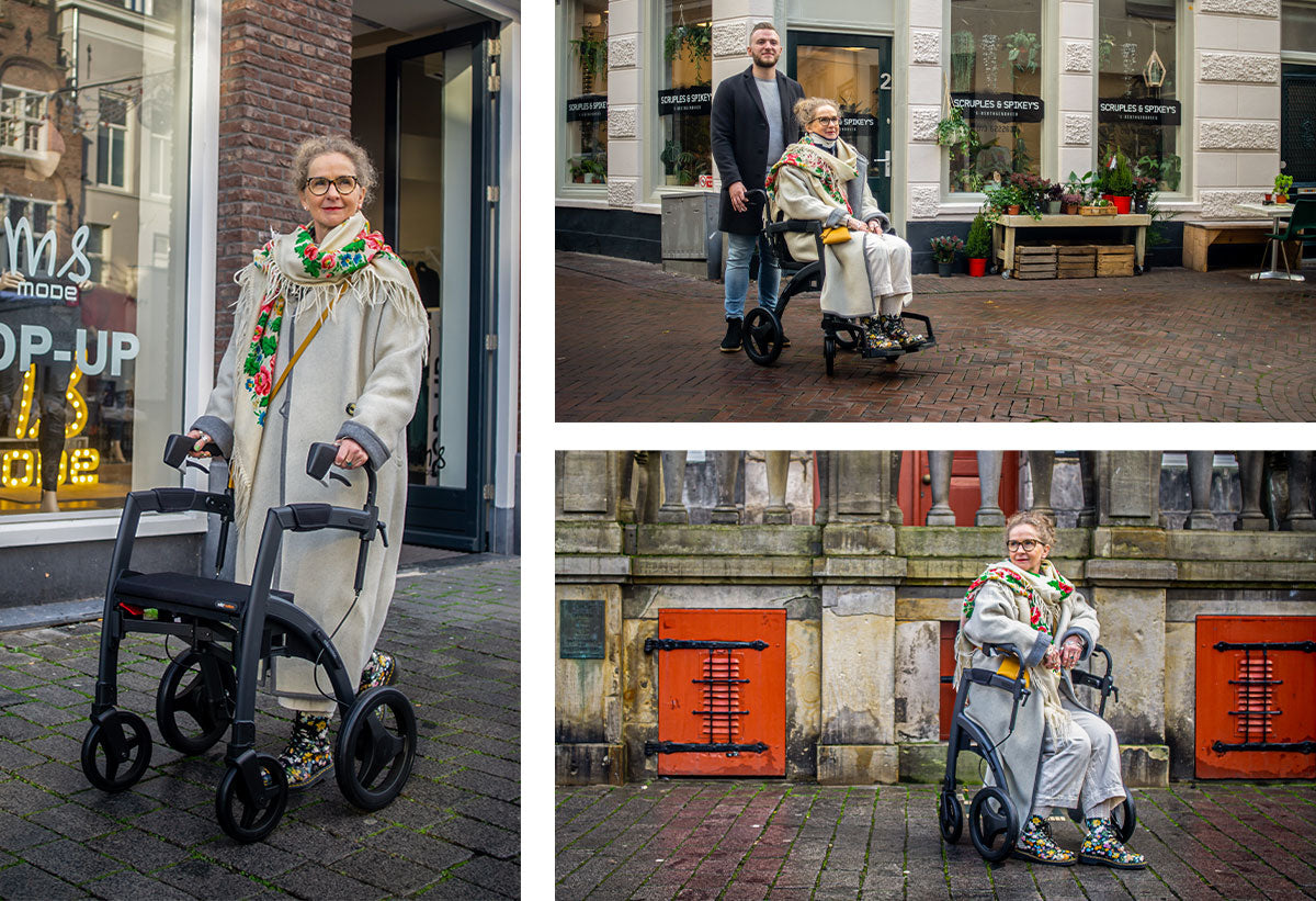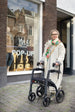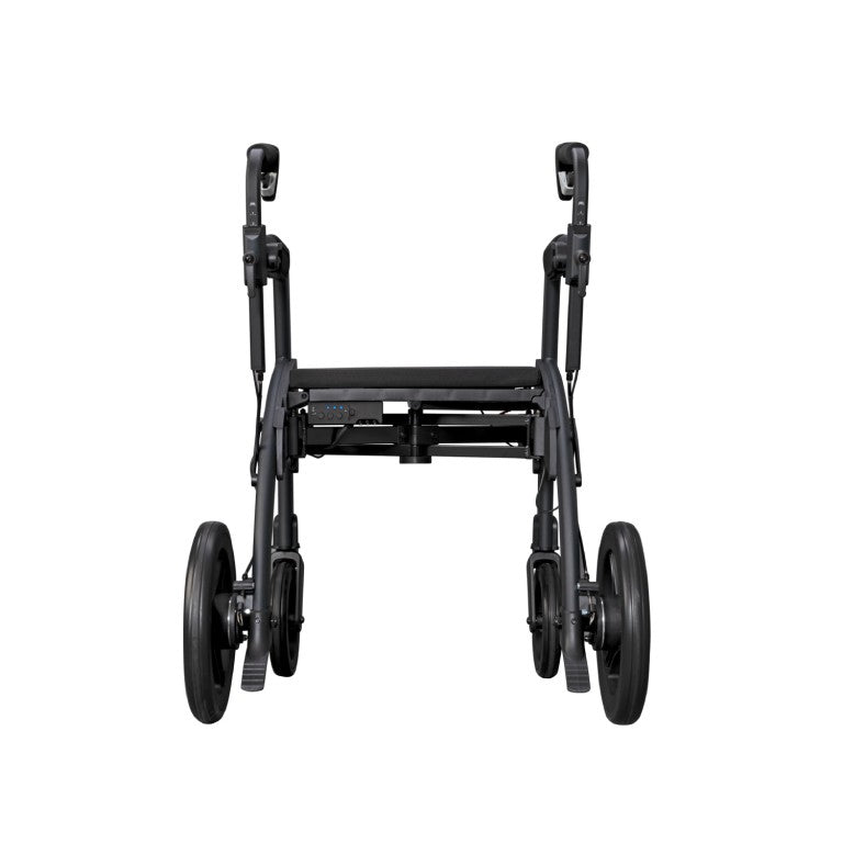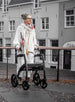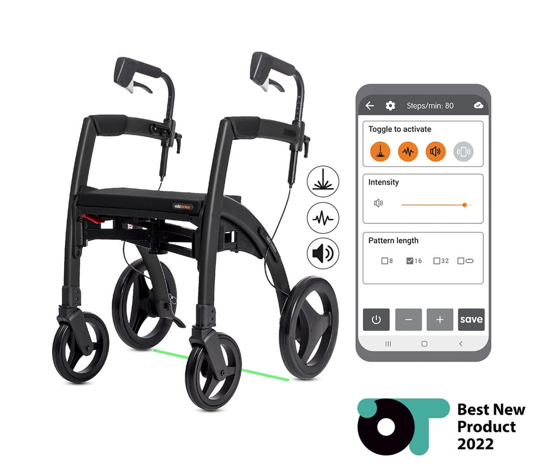 The Rollz Motion Rhythm is an advanced rollator walker specifically designed for individuals with Parkinson’s disease or those experiencing a disrupted walking pattern due to neurological conditions. This intelligent mobility aid features three cueing systems—a laser line, metronome, and vibration—to help initiate and maintain a steady walking rhythm, reducing freezing episodes and improving walking confidence.