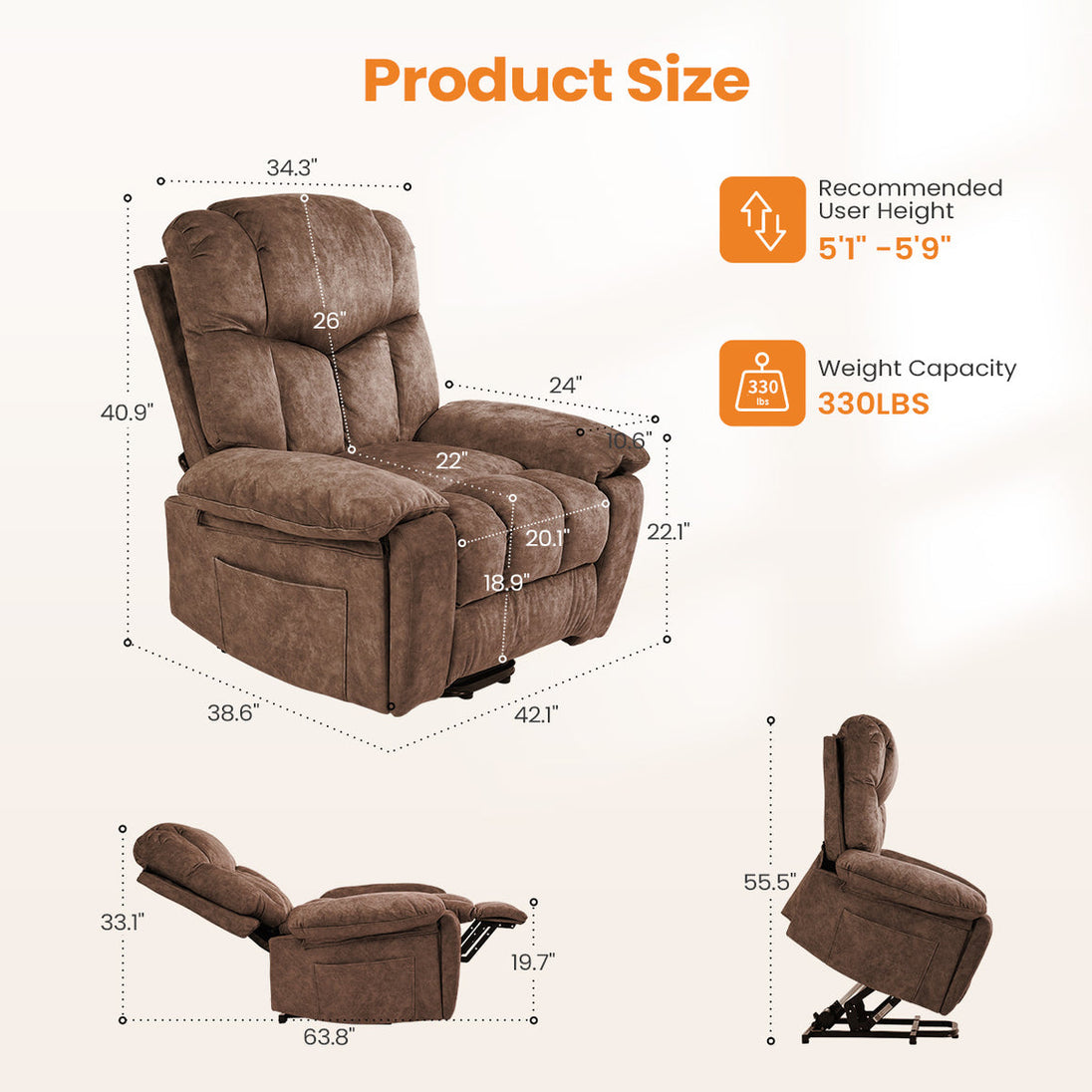 ✅ Electric Lift and Recline: The power lift recliner chair helps you easily recline or stand up, making it great for those who need help getting out of a seated position. It can recline to 160° or sit up at a 45° angle for maximum comfort.