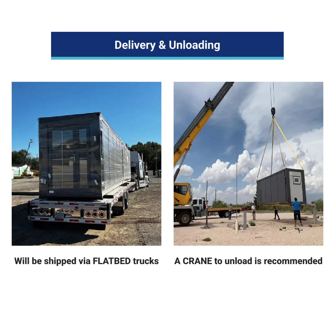 This oversized item ships via flatbed truck. The customer is responsible for unloading. Please ensure a forklift or crane with sufficient lifting capacity is available. A crane is recommended for safer unloading.