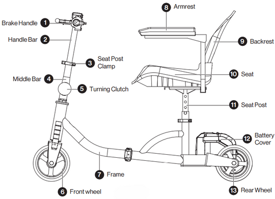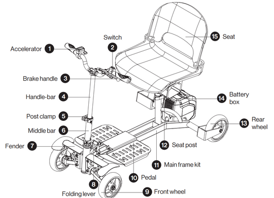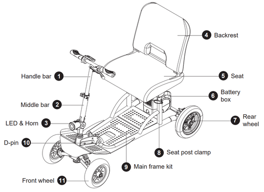 SuperHandy Passport 3 Wheel Mobility Scooter 48V 2Ah Battery, Lightweight - GUT112