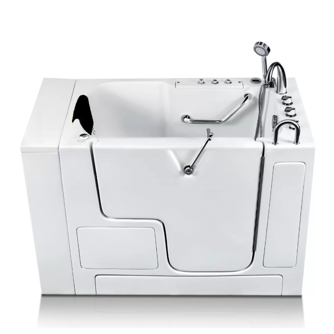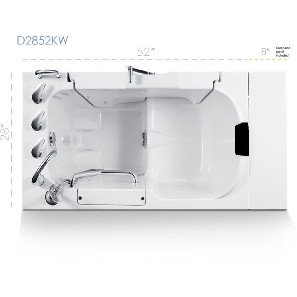 Experience unmatched accessibility and comfort with the American Tubs Wheelchair Series Model 2852W Walk-In Bath Tub – D2852KW, a premium ADA-compliant walk-in tub designed specifically for wheelchair users, seniors with limited mobility, and individuals with special needs. Featuring a wide 34¾” outward-swinging door, this wheelchair accessible bathtub allows for easy slide-in or transfer-seat entry, offering full access from the outside. Engineered for safety and convenience, the 2852W includes a 180° turn door handle and a smooth-glide locking system that ensures a secure, leak-proof seal. Highly recommended by healthcare professionals for in-home and long-term care, this walk-in tub for paraplegics and amputees supports individuals up to 220 lbs., making it a practical and dignified bathing solution.