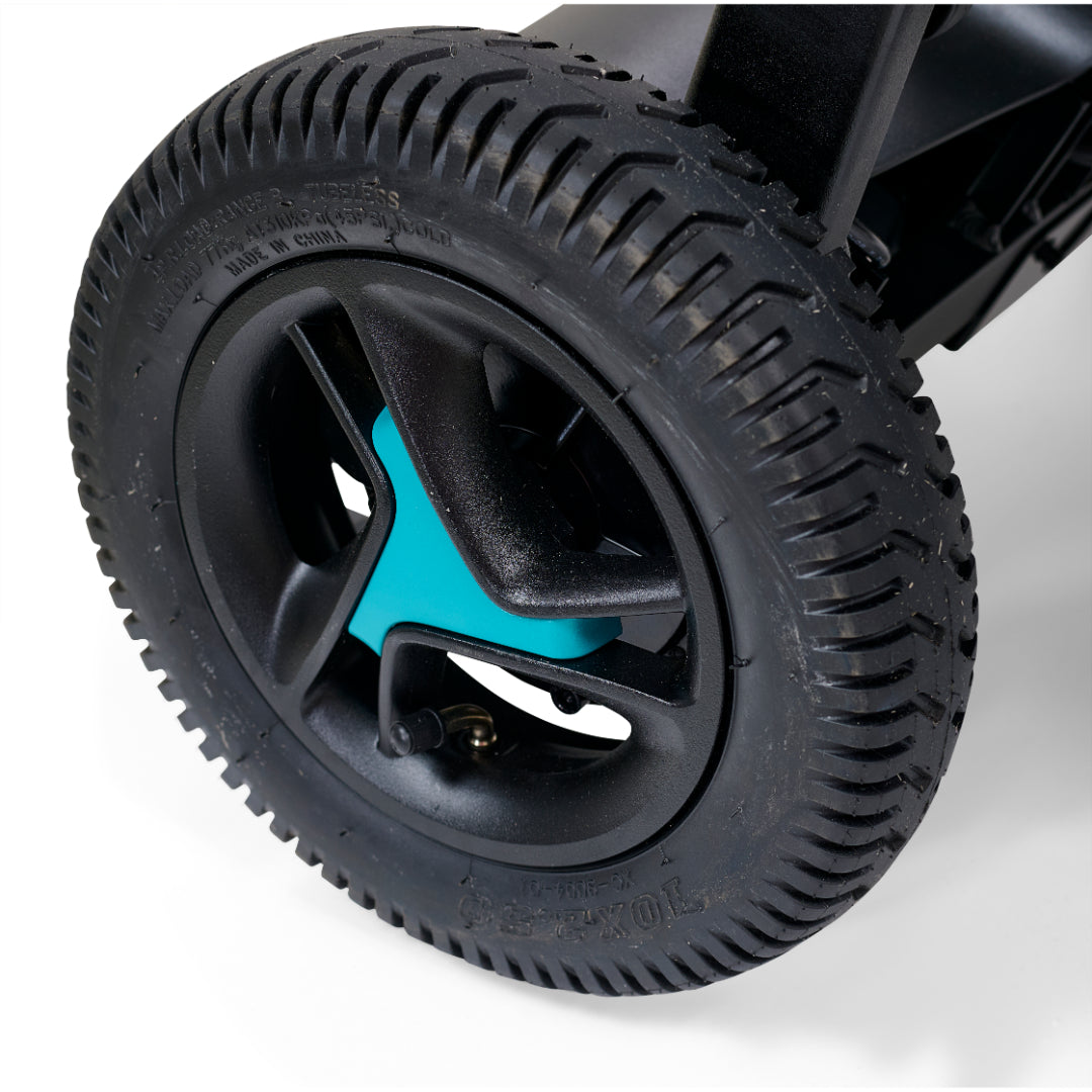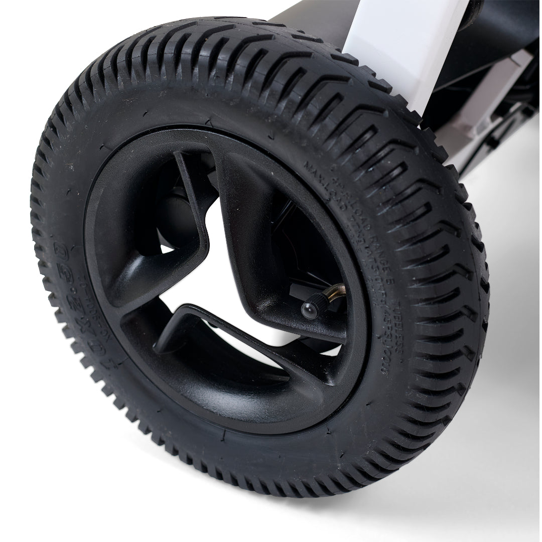 With its tight turning radius, the Golden Ally™ makes indoor navigation effortless, even in small spaces. For outdoor rides, the large pneumatic rear drive wheels ensure a smooth, stable ride across varied terrain. Unlike most travel chairs, the Ally offers comfortable seating and ergonomic foot positioning, eliminating the compromises often found in lightweight models.