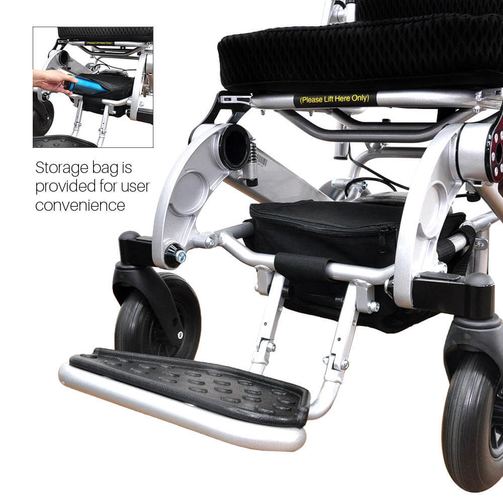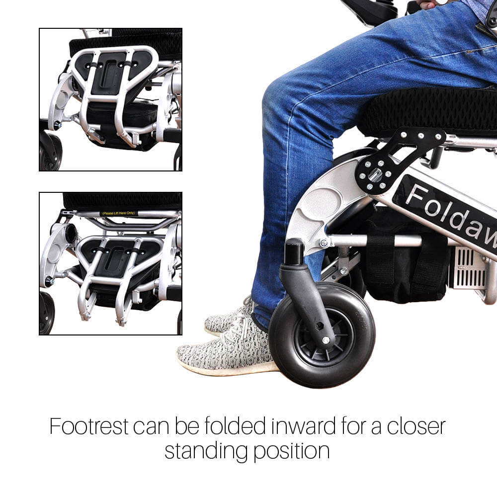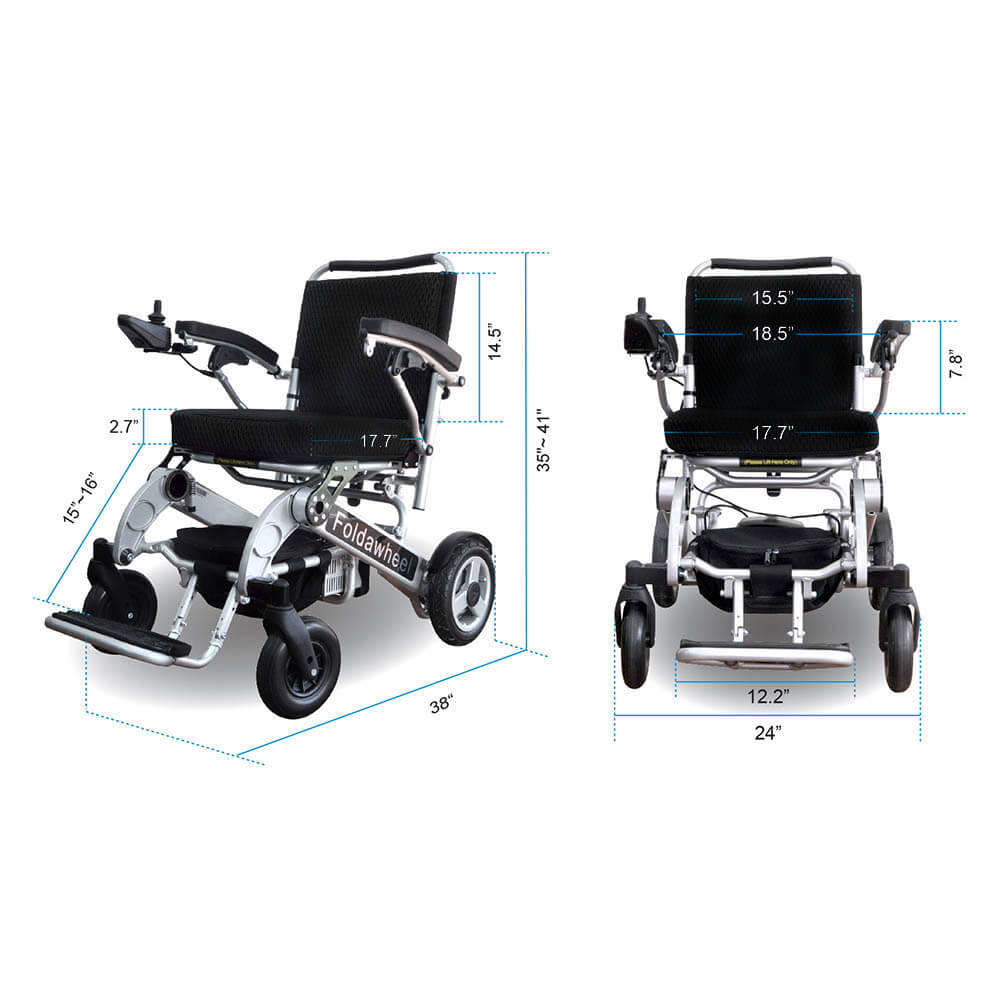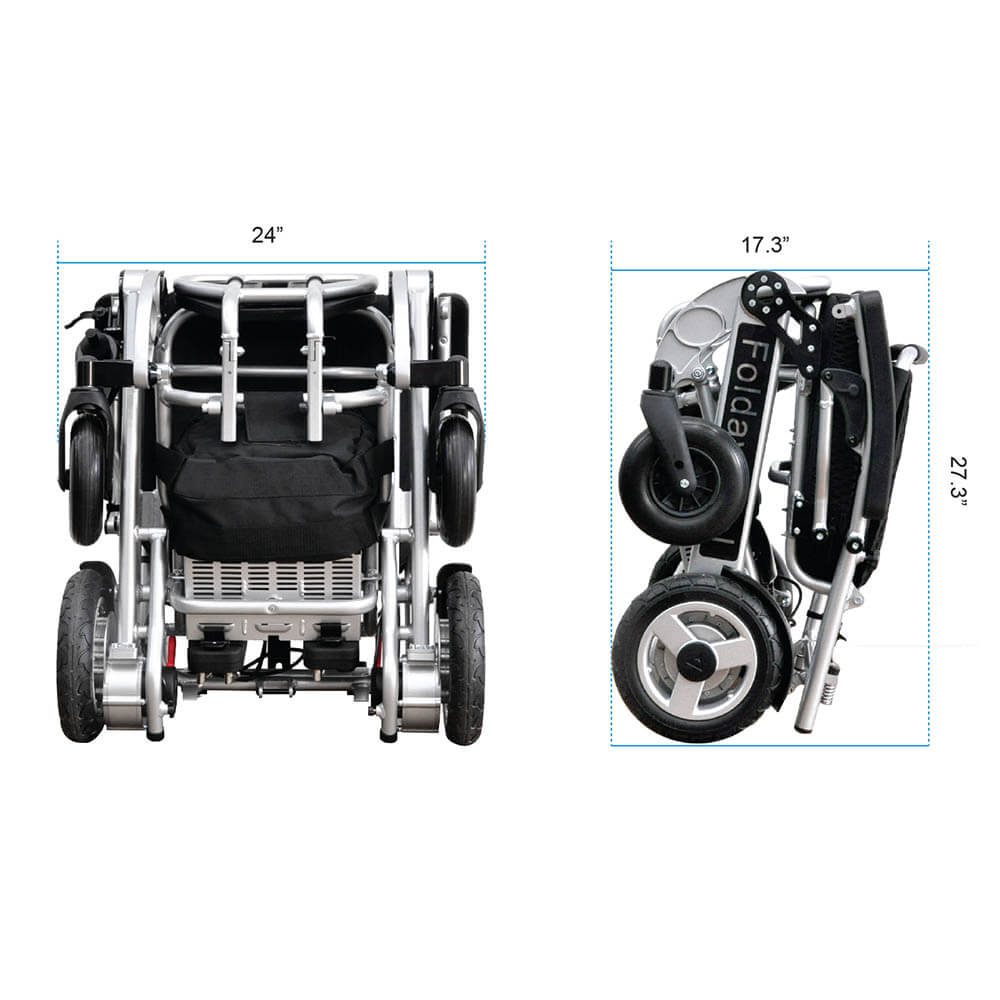 The Foldawheel PW-1000XL is a premium lightweight electric wheelchair designed for users who require extra seat width, increased speed, and a higher weight capacity without compromising portability. As a wider and more powerful version of the PW-999UL, it weighs only 56 lbs without batteries and folds in just one second.
