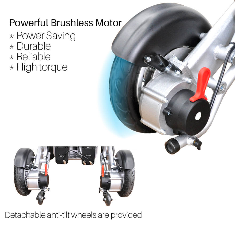 Dual 250W Brushless Motors: Energy-efficient and powerful, these motors offer high torque and a quiet ride compared to traditional brush motors.