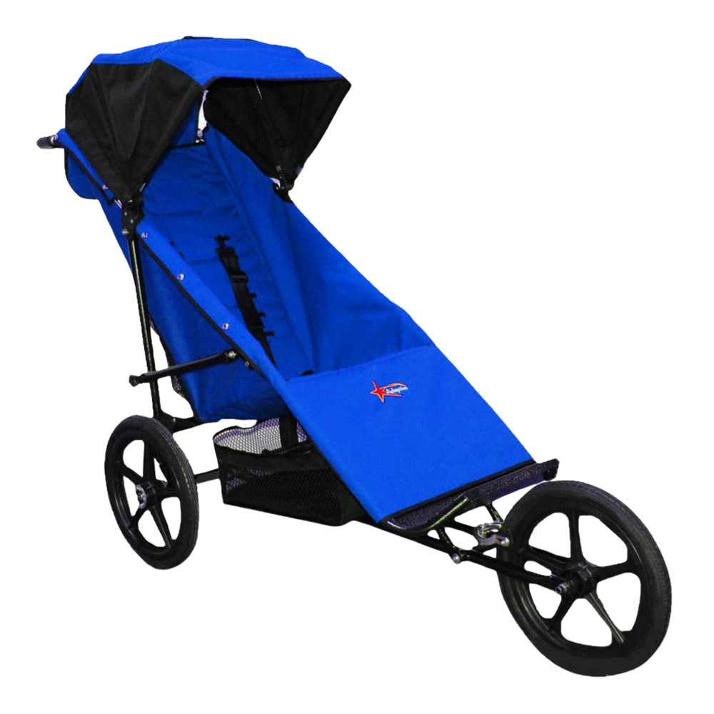 The Adaptive Star Axiom PHOENIX is the ultimate all-terrain special needs pushchair, designed for indoor mobility and outdoor adventures. With a fixed 16” front wheel, the PHOENIX glides smoothly over grass, gravel, curbs, and hard-packed sand—perfect for recreational mobility, running, and racing. Featuring a 5-point safety harness, sun canopy, undercarriage storage, hand brake, and rear foot brake, this 3-wheeled adaptive chair ensures safety and comfort on any route. Available in one size and two colors, it's a trusted choice among families and race teams, including Ainsley’s Angels. Optional swivel front wheel kit available for added versatility.