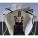 The wide, open entry allows a wheelchair to roll in with ease, offering ample space for comfort and movement. Users who cannot sit fully upright can remain slightly reclined, and there is sufficient room for a caregiver or companion to be inside the chamber during treatment.